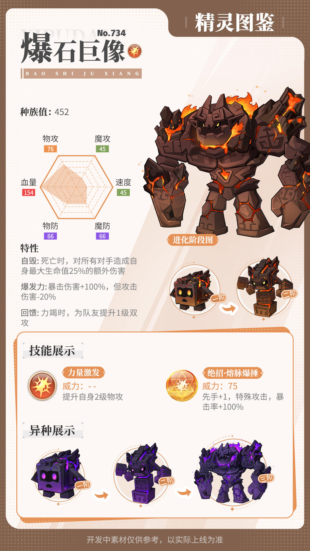 获取方式:地之心熔岩地髓开放,到达第35层后,可捕捉新精灵朋友·爆墩墩,还有机会捕捉到异种精灵·爆墩墩。