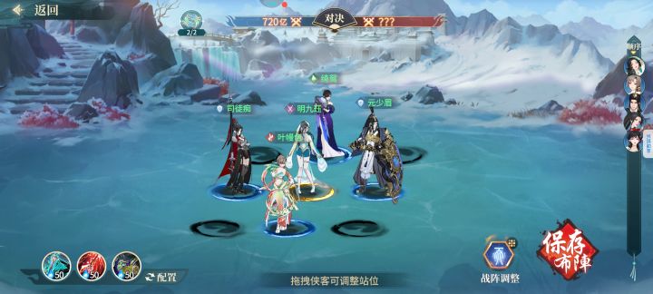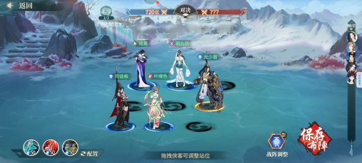 如果遇到鱼肚聂等打一列的对手打不赢,阵型换221,元带3星以上专武站最前面。
