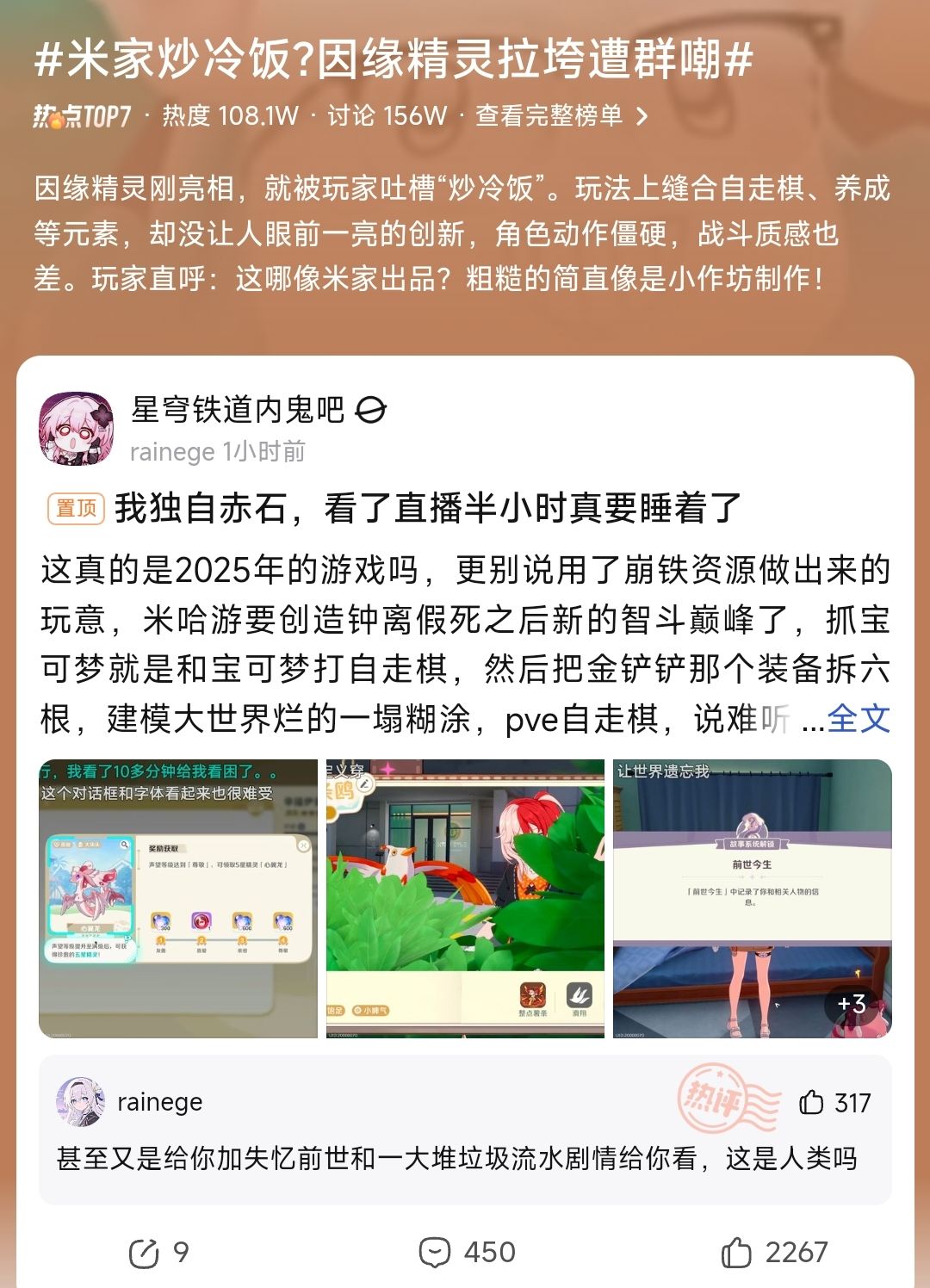 💬相关话题内容在玩家社群中引发热议,然而部分网友则对游戏发出了尖锐的声音