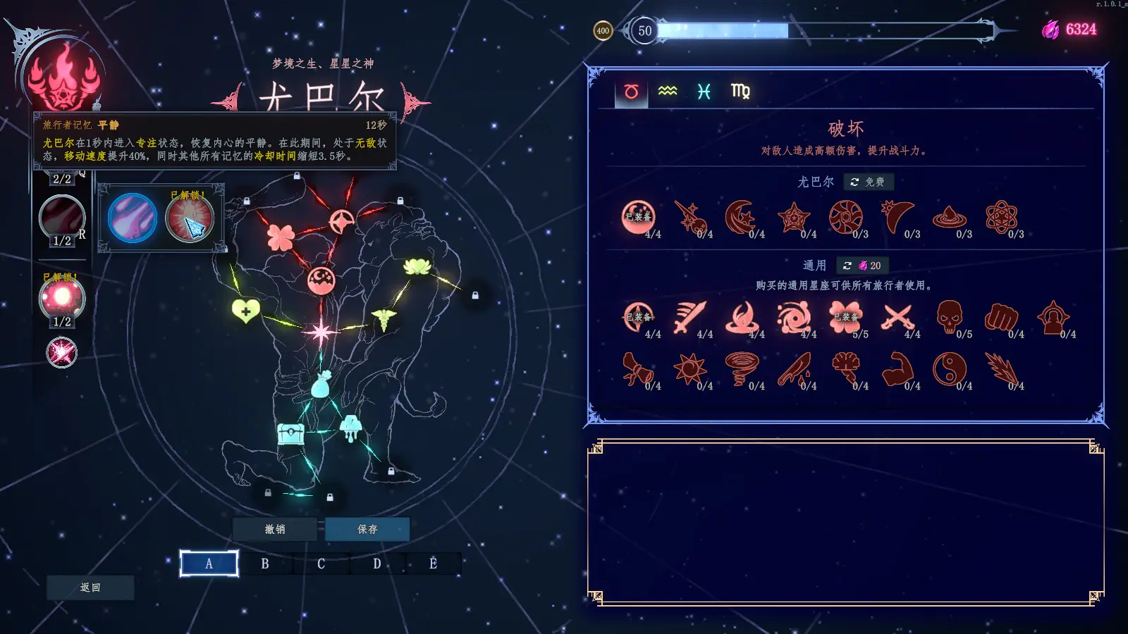 如果demo的《梦之形》局外养成跟传统差不多的话,正式版的局外养成就有点类似符文机制了,除了需要花时间练的英雄熟练度(游戏第一天发售当晚就更新,削减了熟练度的肝,让玩家获得良好的体验),还有花星之尘解锁的星星,你的槽位也是有限的。通过不同的星星搭配来构成你不同的符文(当然,越后期的星星属性越强力)。