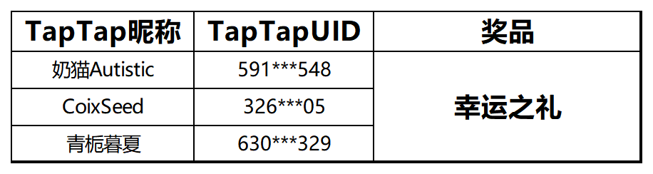 恭喜以下3位旅行者获得【幸运之礼】一份~