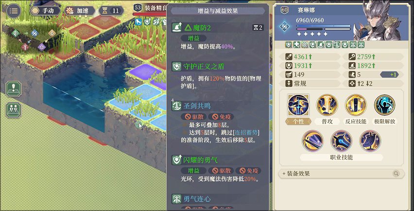 - [▲连招蓄势]在释放[圣剑术]技能前获得,持续至行动结束。但释放[圣剑术]技能后,因触发蓄力效果,无论是否跳过准备阶段,行动都会立即结束。这意味着该buff存在时间非常短。