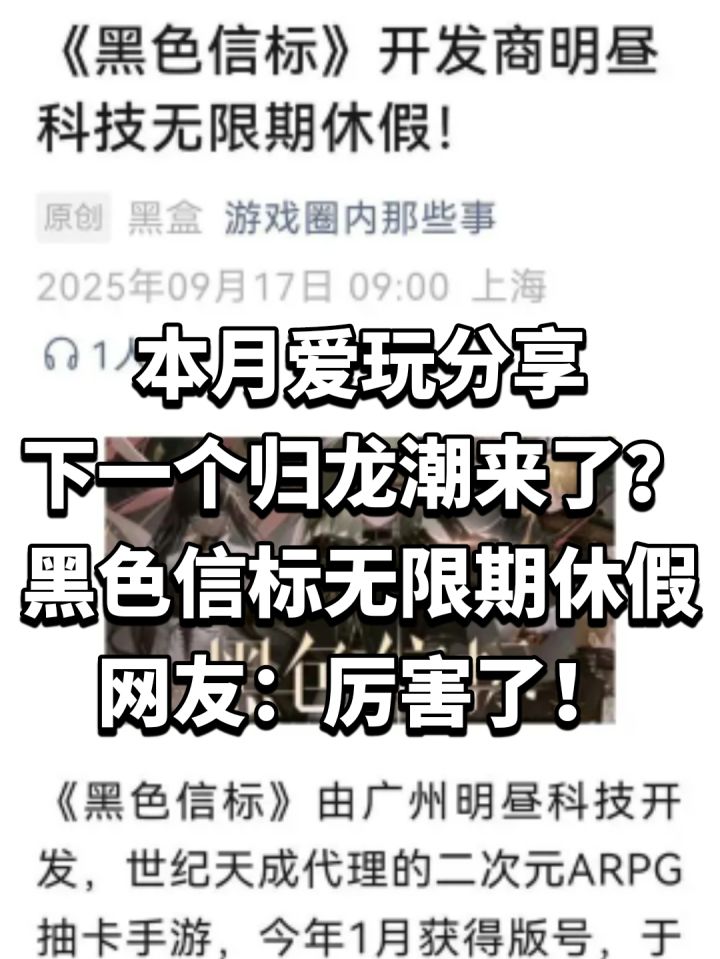 📅由广州明昼科技开发、上线不足半年的现知名二次元手游《黑色信标》,项目被曝采取 “无限期休假” 措施,相关信息引发网友激烈讨论,关联话题登上热搜(话题热度接近百万,讨论度接近半百万)