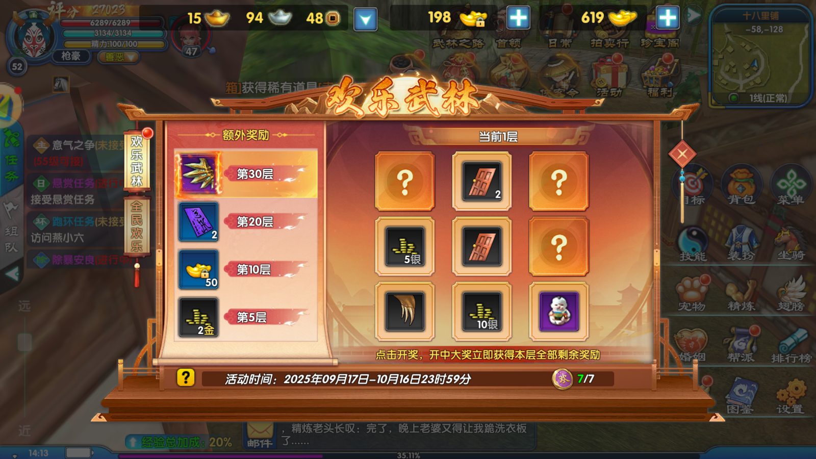 - 参与方式:角色等级无限制,活动界面点击 “欢乐武林” 即可进入;