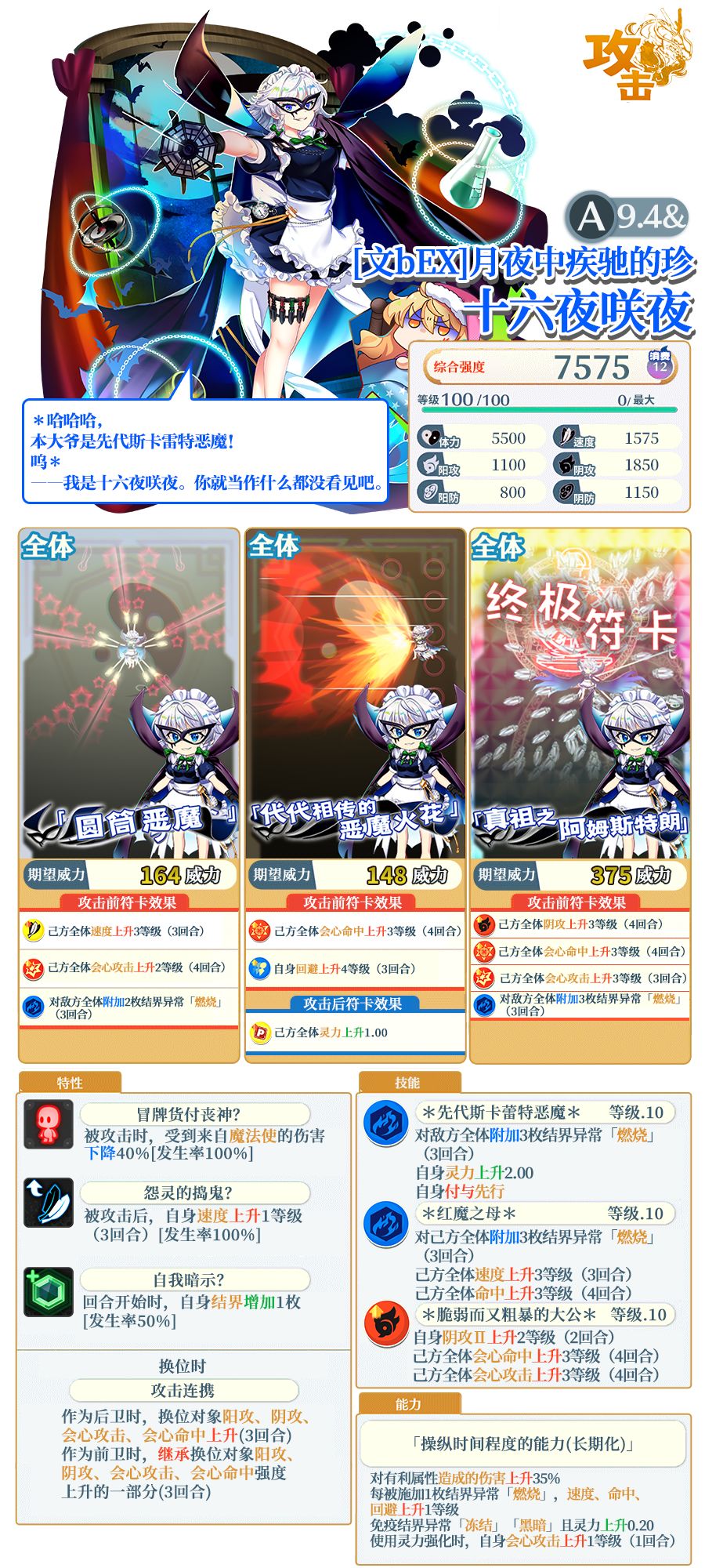 ※「[文bEX]月夜中疾驰的珍品猎人 十六夜咲夜」需要使用同名伙伴或者「大替身」进行界限突破。不同泛异记号的伙伴、「大替身」以外的替身无法对其进行界限突破。