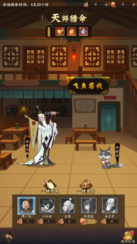 【天师猎命】活动将限时开放,活动期间道友们可以进入客栈进行猎命。天师以铜钱为引,唤醒猎命师血脉,可感应天地间的命格。越高级的天师,需要消耗的铜钱越多,同时获得高级命格的概率也会越高。道友们可通过灵宠挂机、冥界幽府、鸿蒙之墟等方式来获取猎命铜钱。猎命令牌是张道陵的信物,使用令牌可以直接召唤张道陵进行猎命,并额外赠送1枚命格碎片。消耗命格碎片可兑换各种品质命格,消耗命格还可兑换秋意奇宝自选(内含无双御灵碎片14选1、神兵碎片18选1)、重铸石、玄灵玉髓碎片、玄灵露等奖励哦~