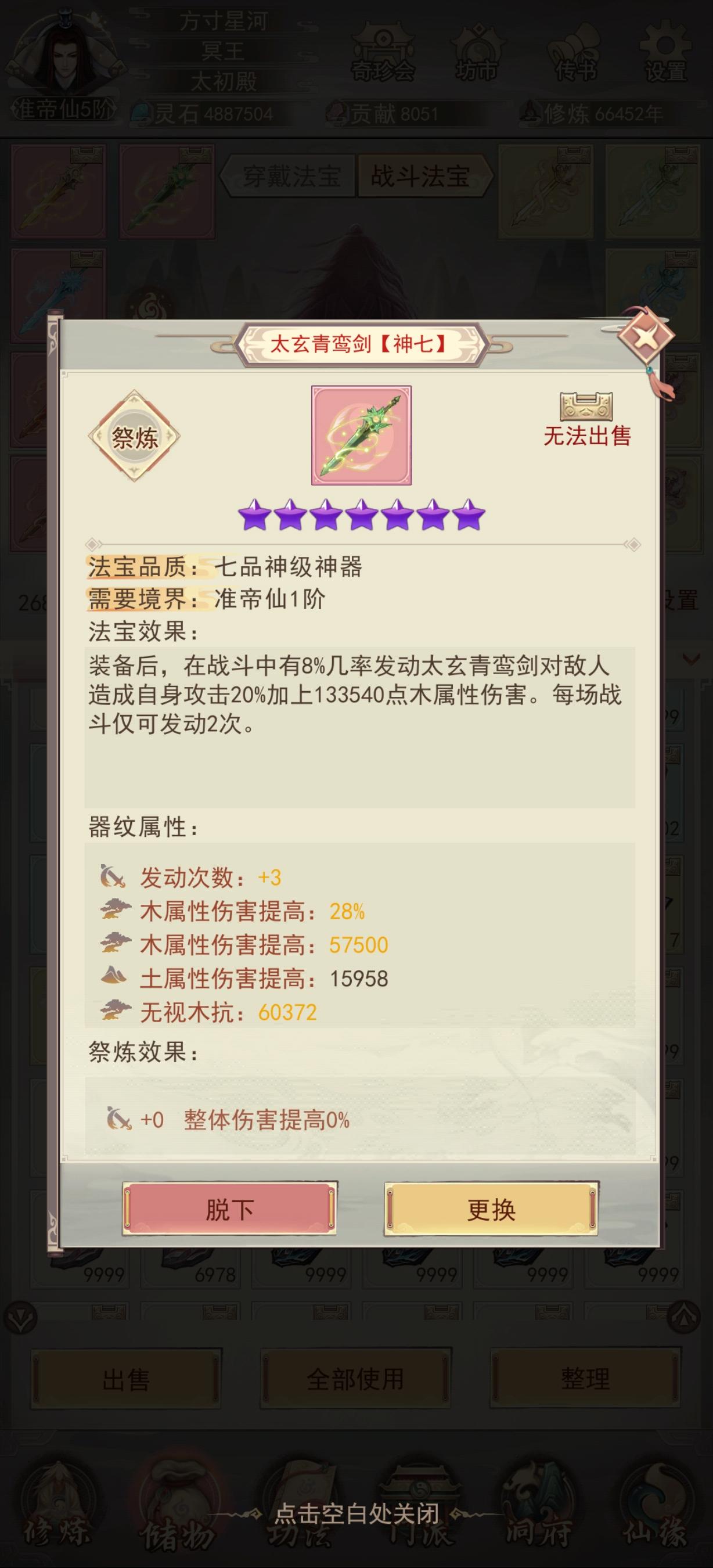 我法宝词条四个分别是:+3次数>五行百分比增伤=五行数值增伤=无视五行抗性。