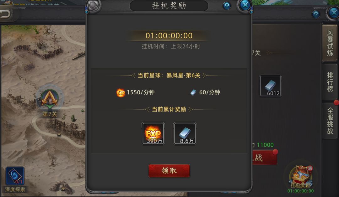 风暴试炼:这个你得理解成“离线挂机经验”。就是说你游戏就算不在线,它也在24小时给你攒经验。你唯一要做的,就是多打打层数,因为你打的层数越高,它每小时给你攒的经验就越多。