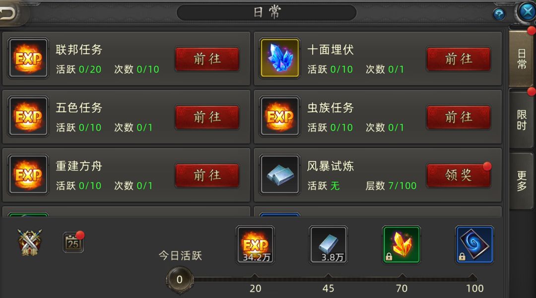 3.任务链:别周一就急着跑! 等到周末再做,那时候任务要的材料都便宜了,而且运气好还能赶上“开拓者经验加成”。