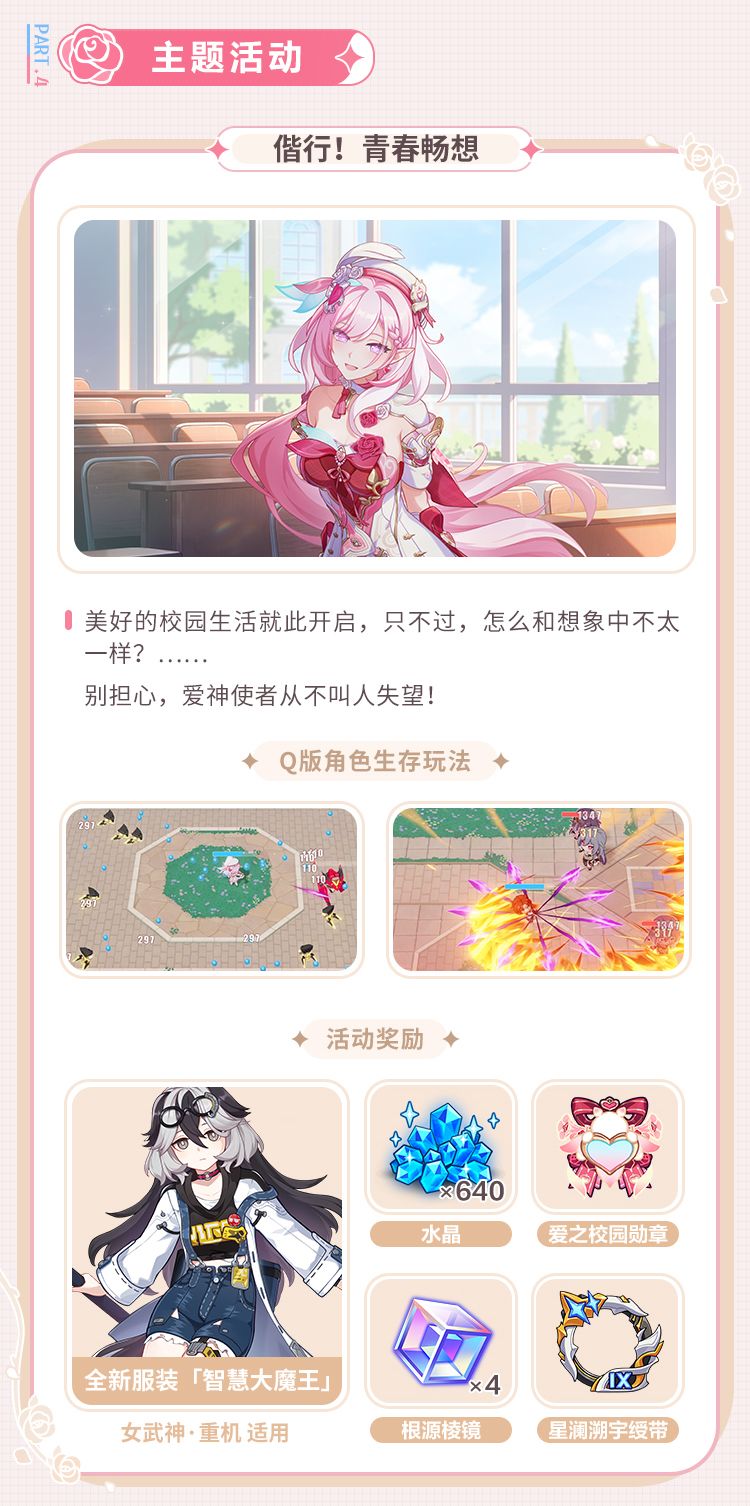 全新S级角色「嗨♪爱愿妖精♥」、主线第二部第十章「于信仰之光下重逢」、主题活动「偕行!青春畅想」、周年系列福利以及全新服装等重磅更新情报一一揭秘!