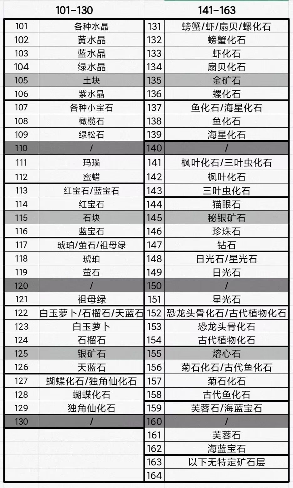 *100-162层*:非尾数0的楼层出产特定矿产,可针对性挖掘。