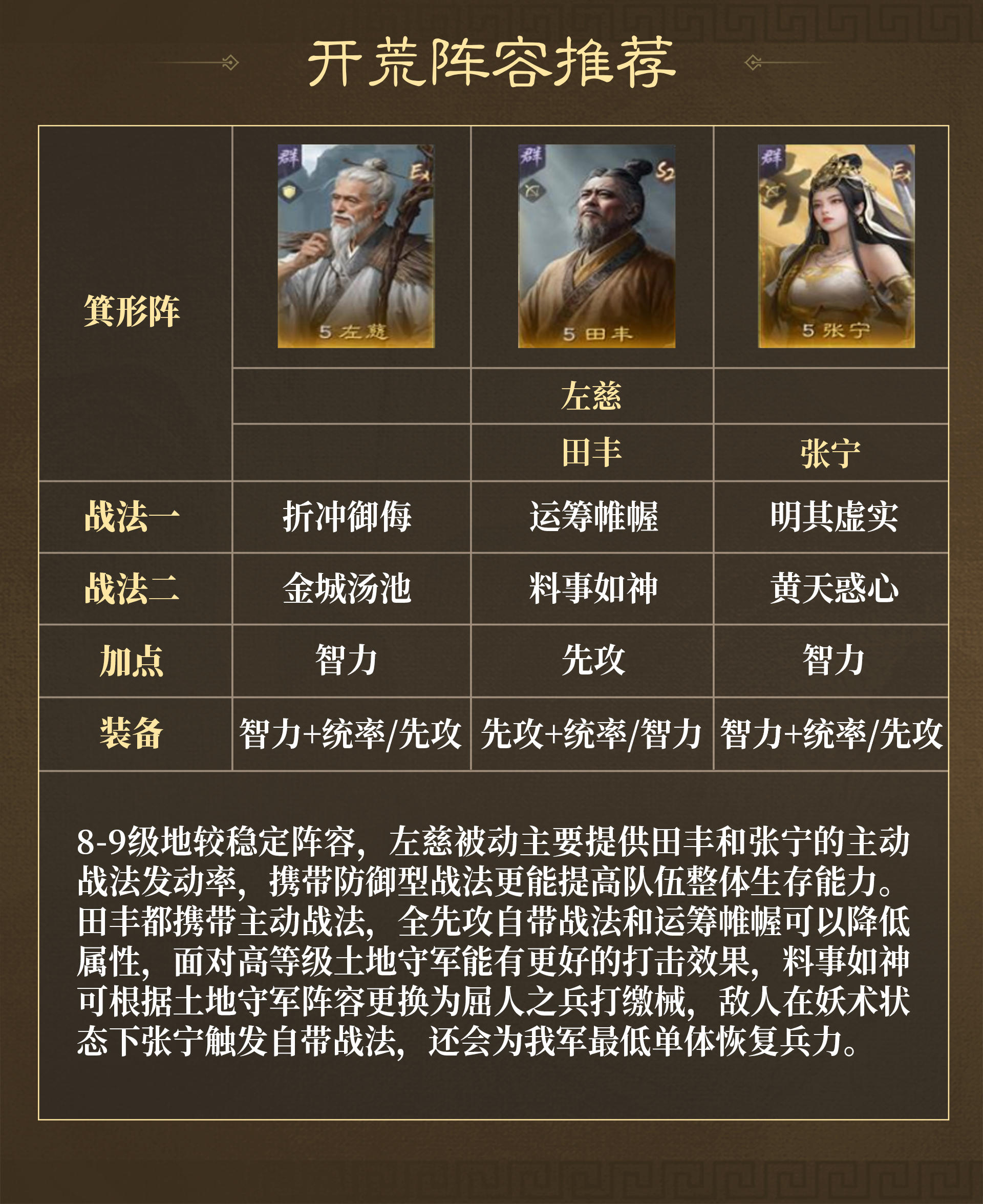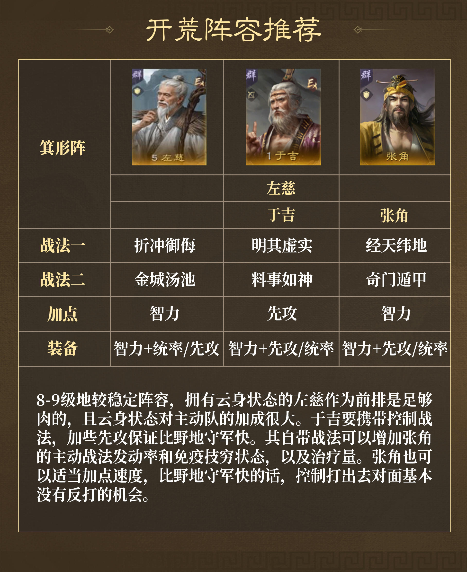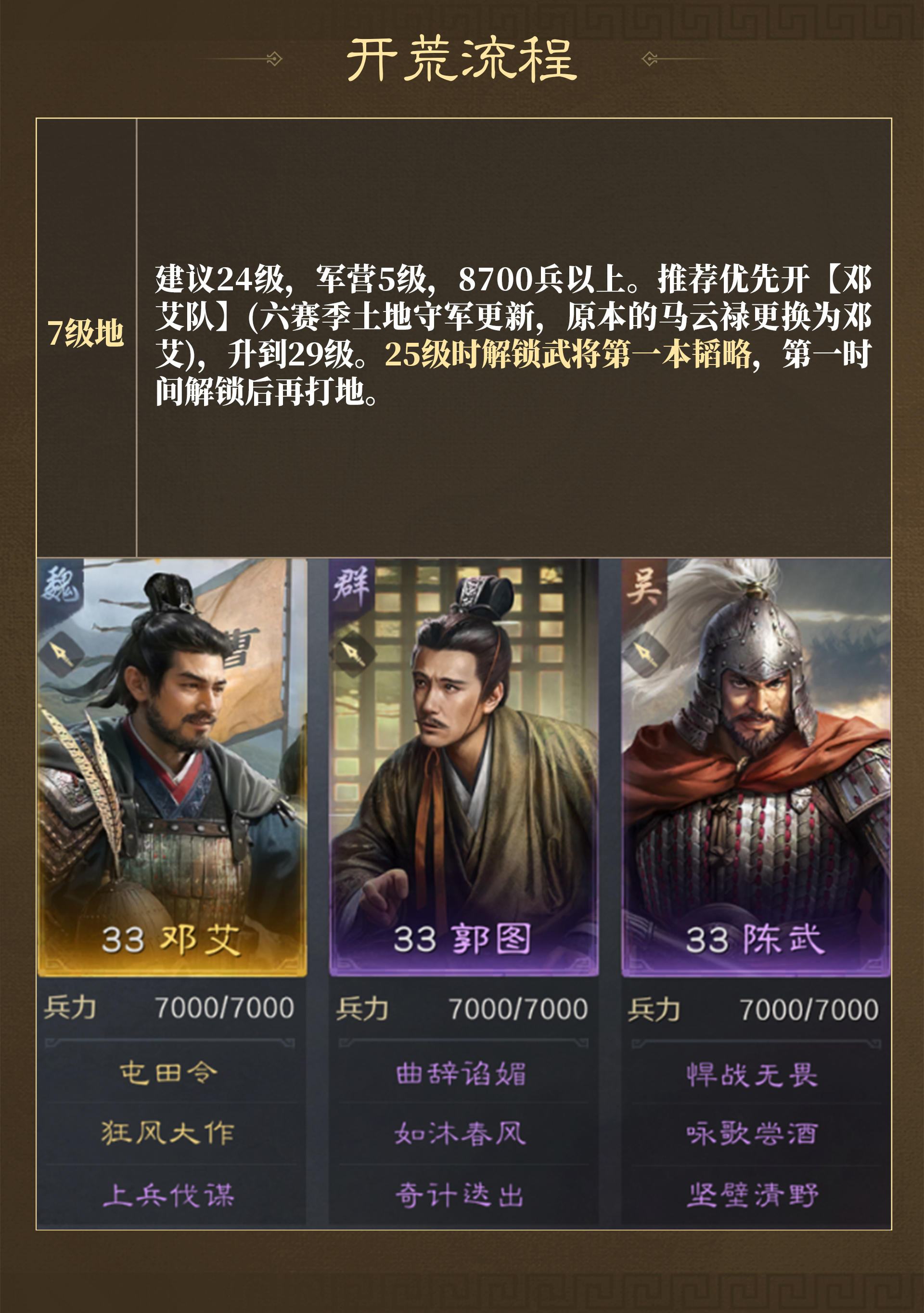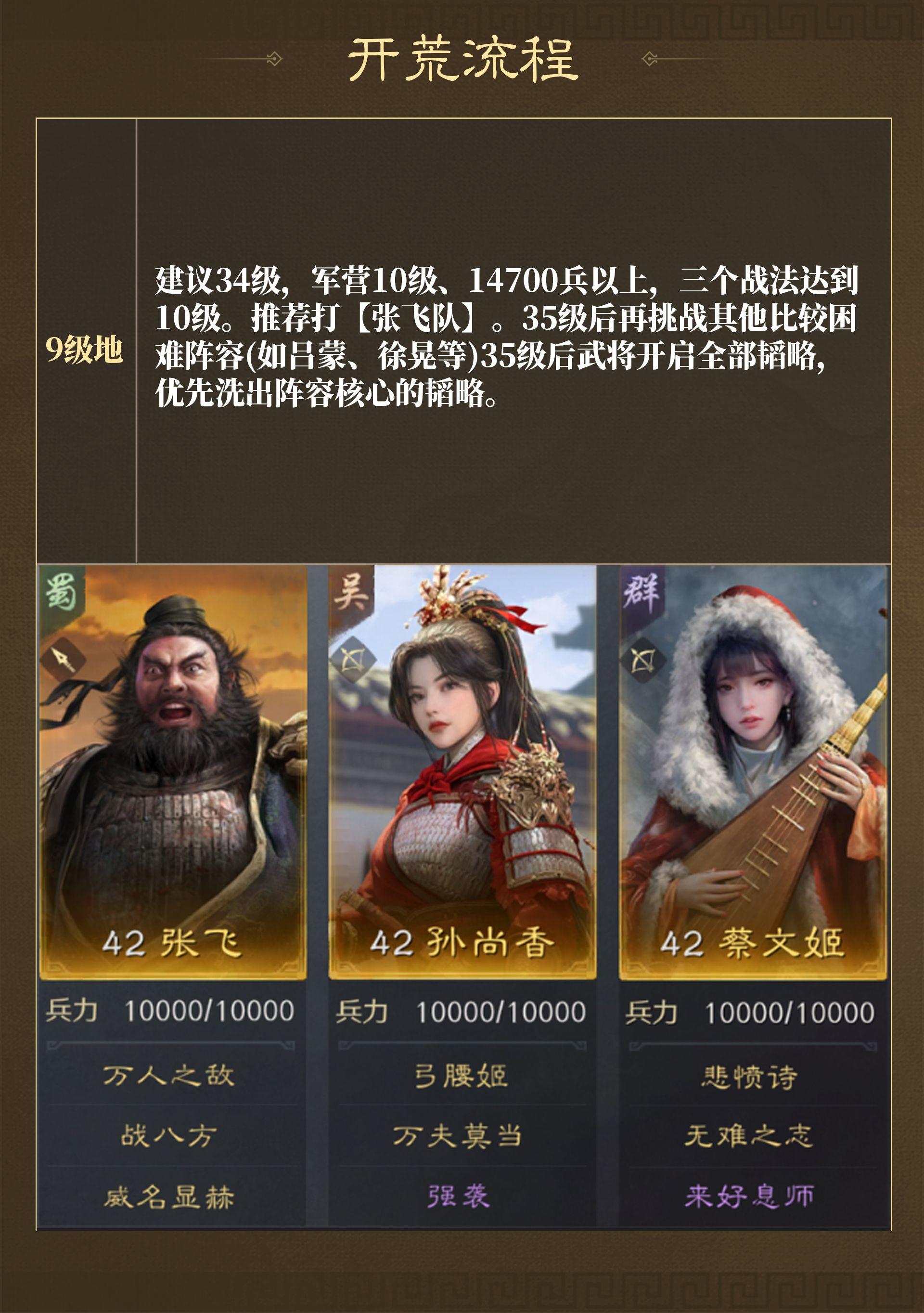 3.在开荒时可以合理利用免费置换和重置战法来发育。