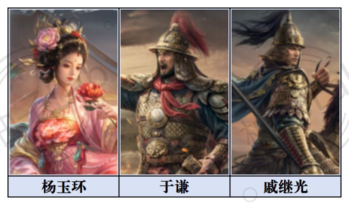 所以杨玉环比较适合搭配上类似于谦这样的分摊型的武将,再加上军师,比如说戚继光,就可以为整个部队提供一个增益、以及恢复的效果,或者军师搭配华佗,也可以在伤兵量更少的情况下,获得更高的一个治疗量,同时还有分摊效果,提升你所有部队的坦度。可能在开荒前期她的作用就会开始体现。比如说你有个于谦+杨玉环+戚继光的一个队伍,可以对你的前三队坦度有一个非常大的提升。