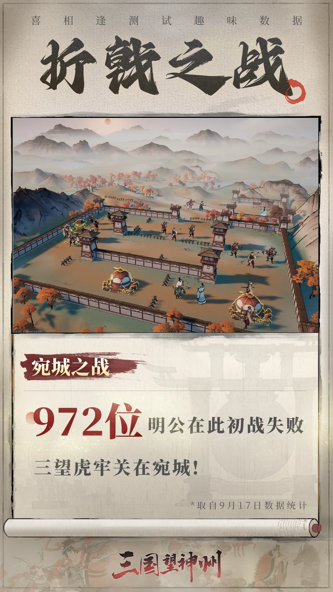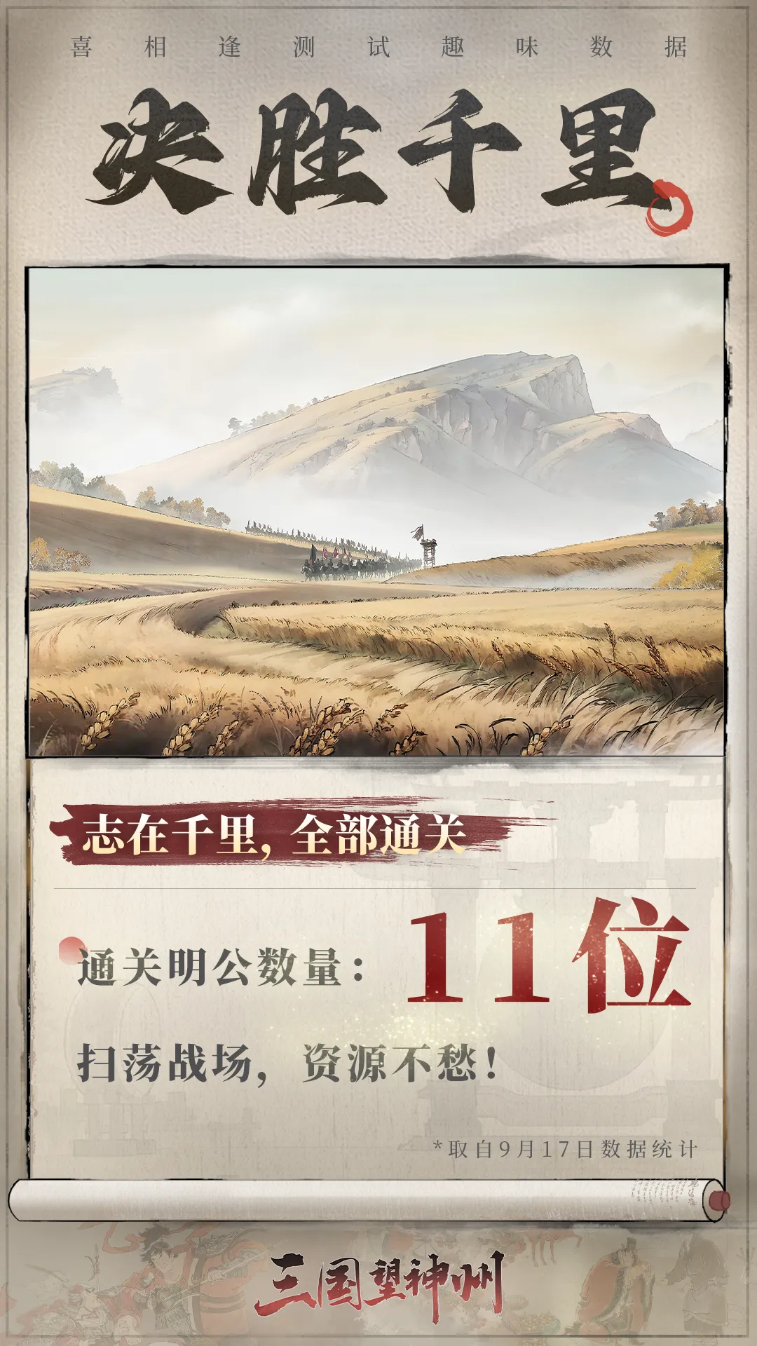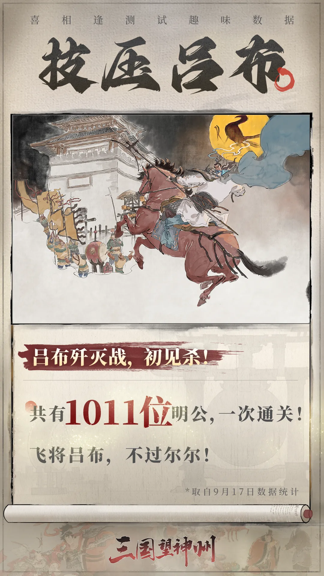 「喜相逢」测试已于昨日正式结束,本次测试中明公们不仅体验了全新的刘备主线剧本「匡扶汉室」以及全新主将关羽、张飞,大家还打出了不少有趣的亮眼数据。