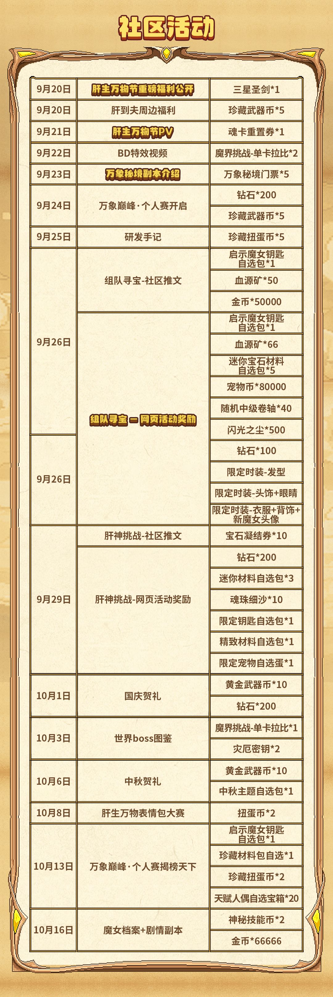 【肝生万物节】版本月历+福利汇总来袭!(含礼包码&抽奖)