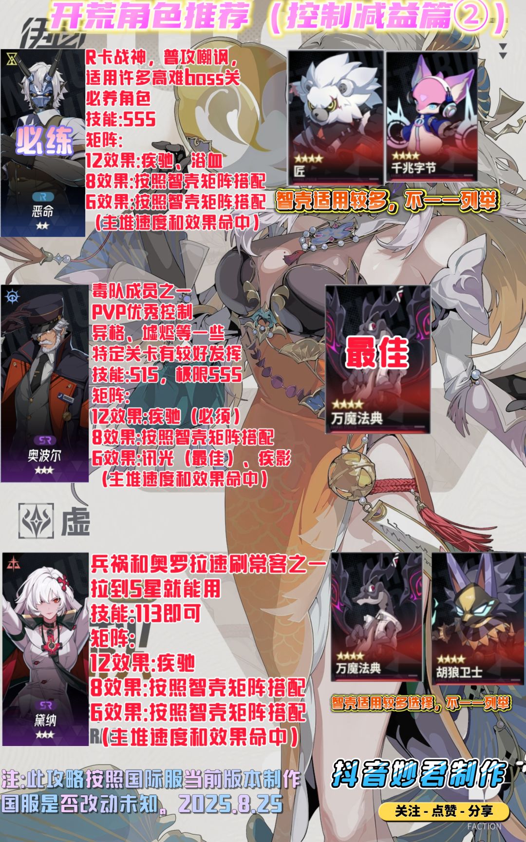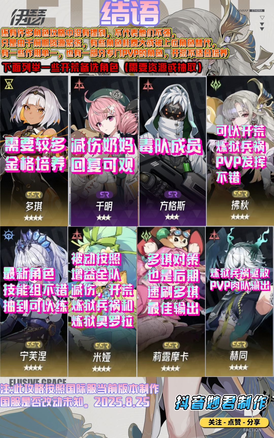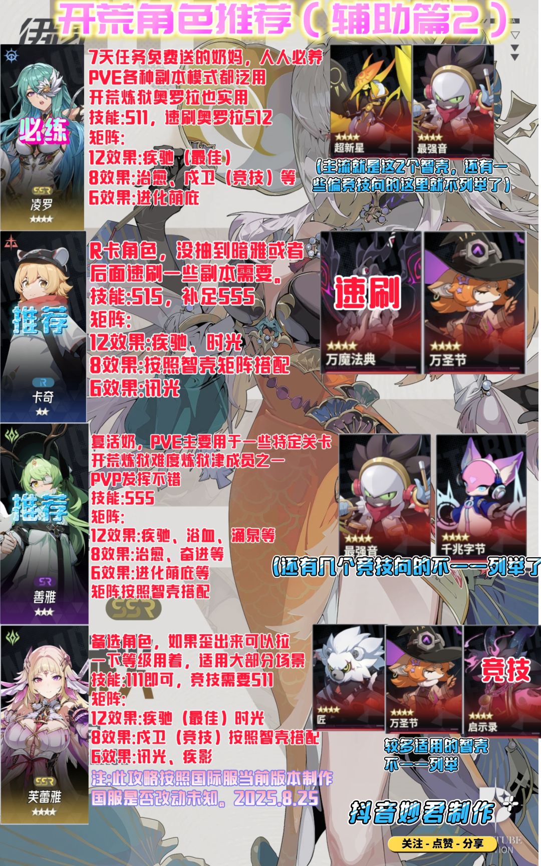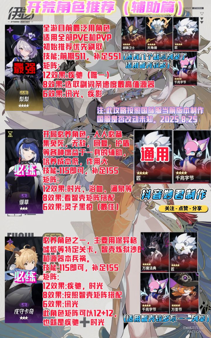 注:次图文攻略制作于8.25,所以图上并没有提及最新角色和最新智壳。
