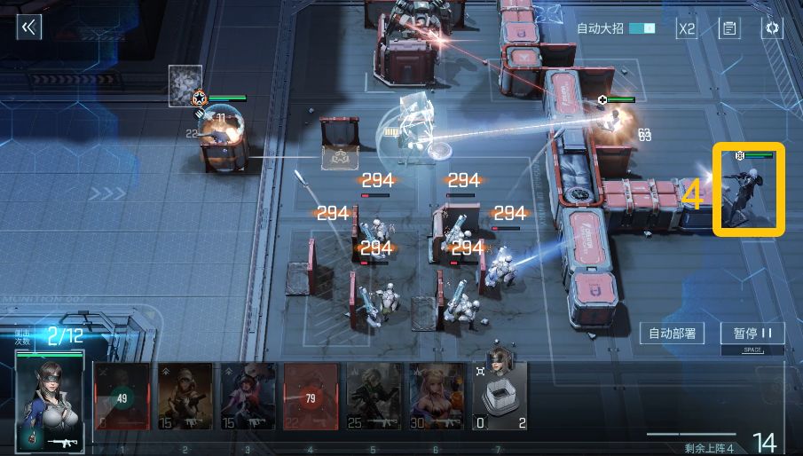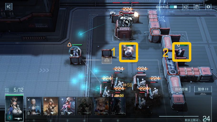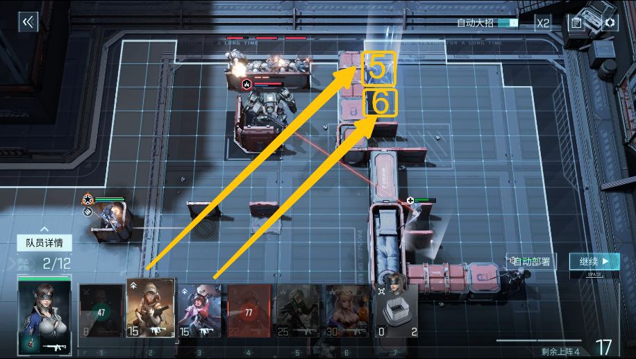 按照图示依次上阵【伊莱塔】(4),配合沙鹰模组效果,快速消灭下方小兵