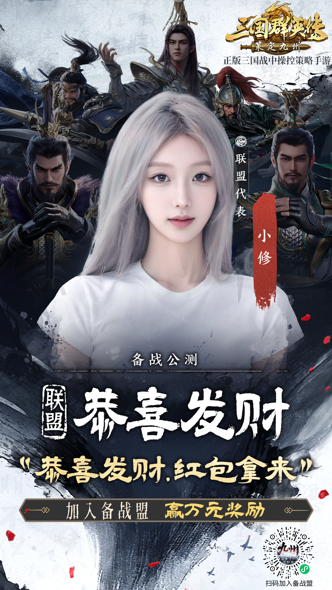 10月11日,公测即将来临,如果你也想加入这个财气满满、妹子多多、福利多多的联盟,可以扫描上方海报二维码加入,【恭喜發財】已经准备好红包和城池,就等你来一起热血开战!