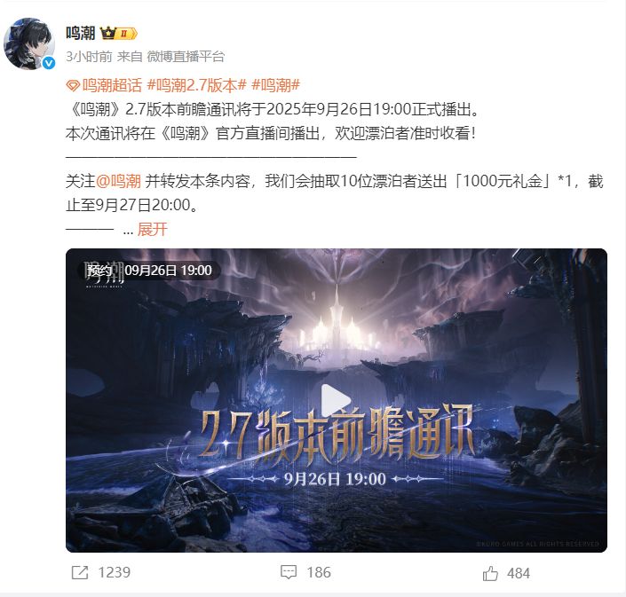 《鸣潮》官方宣布,2.7版本前瞻通讯将于9月26日19:00正式播出,新版本核心内容与新角色阵容同步揭晓。根据预热信息,两位五星新角色嘉贝莉娜与仇远将开启限时UP。