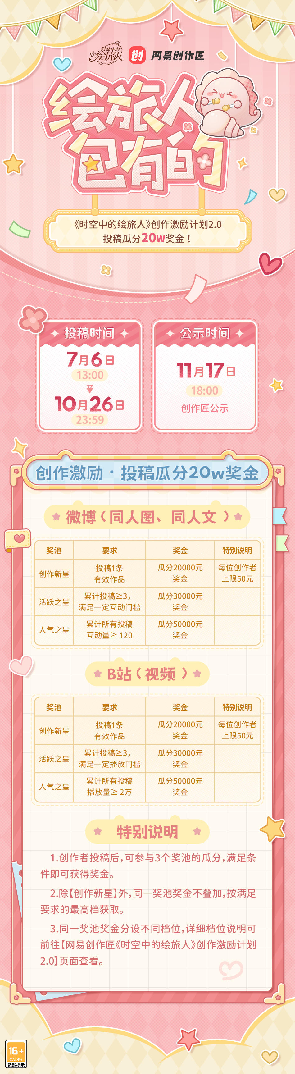 🦋 《时空中的绘旅人》×小红书、抖音、网易创作匠 三平台创作激励计划现已开启,参与活动即有机会瓜分超45万元奖金奖品奖励!