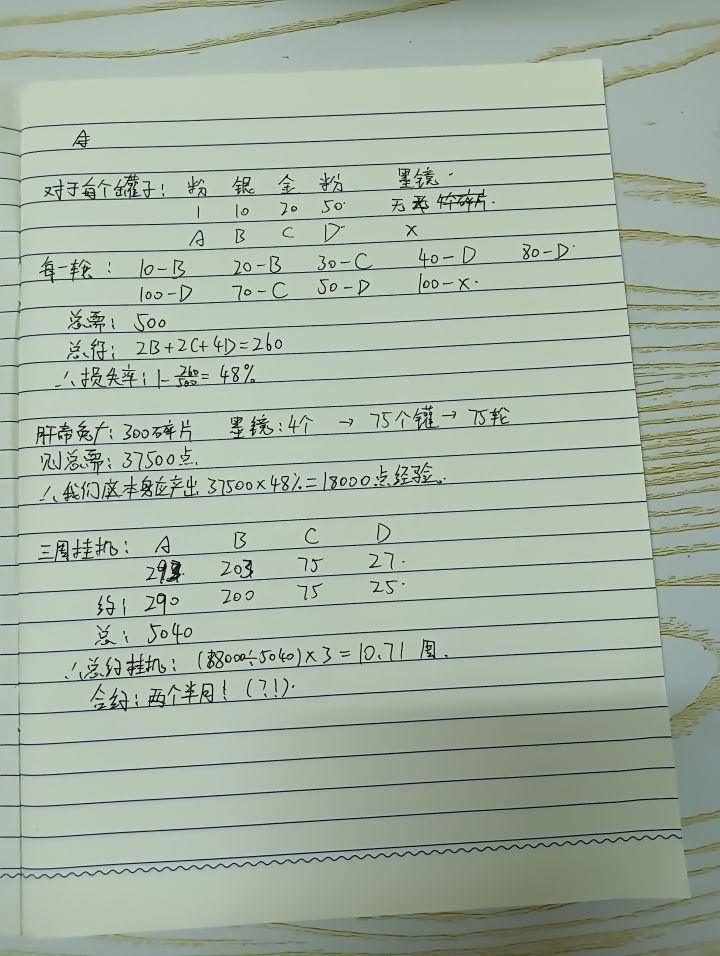 而免广券而免广券需要300个碎片每一轮只给四个,则需要开75轮,总计37500点经验