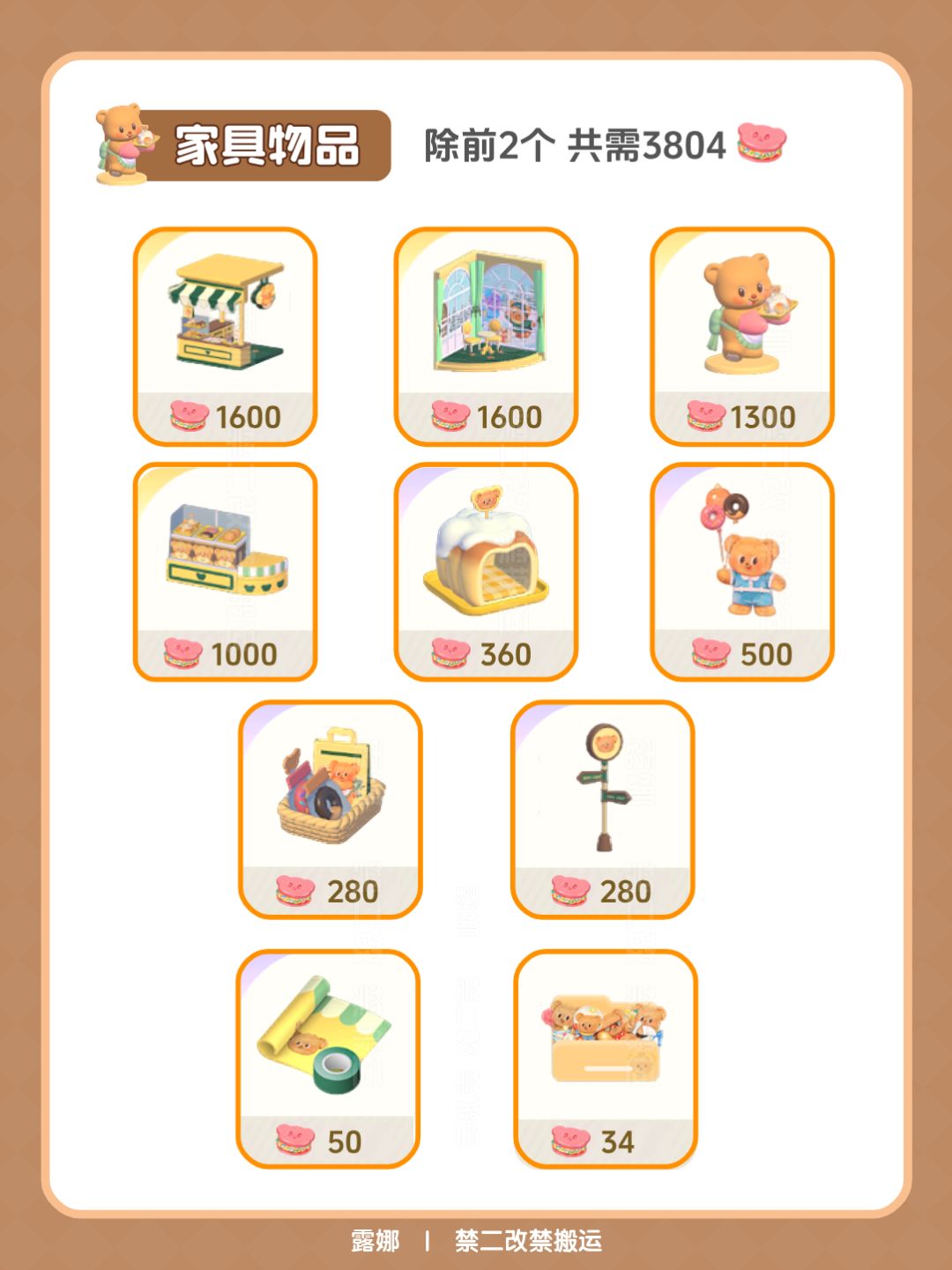 兑换除烘焙房和餐厅一角,其余共需3804曲奇
