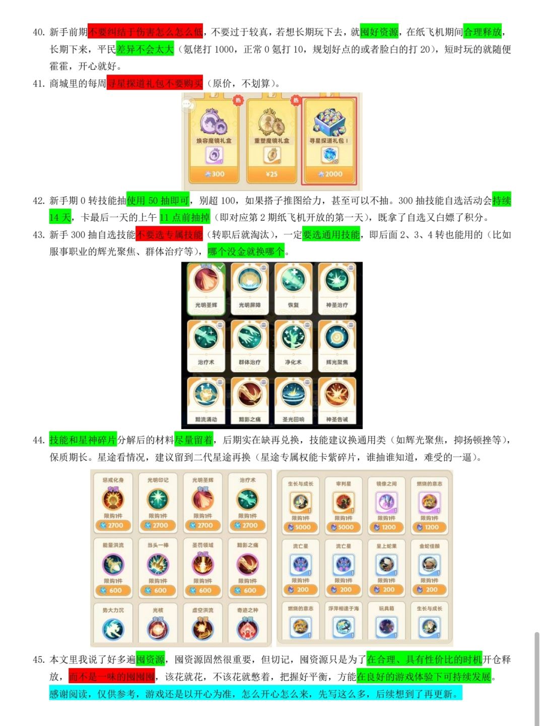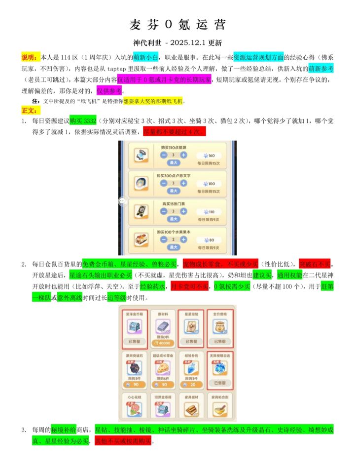 致0氪长期玩家——资源运营规划方面的建议