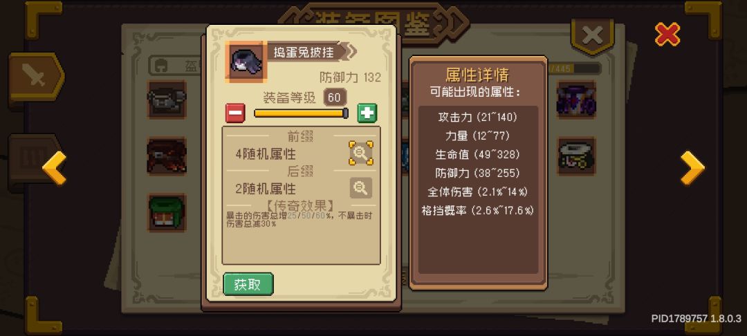 防具还有另外一套配置,帽子陈旧骑士头盔,衣服鞋子兔子套,伤害或许更高,暂时没打到能用的兔子鞋子和陈旧骑士头盔还未尝试。