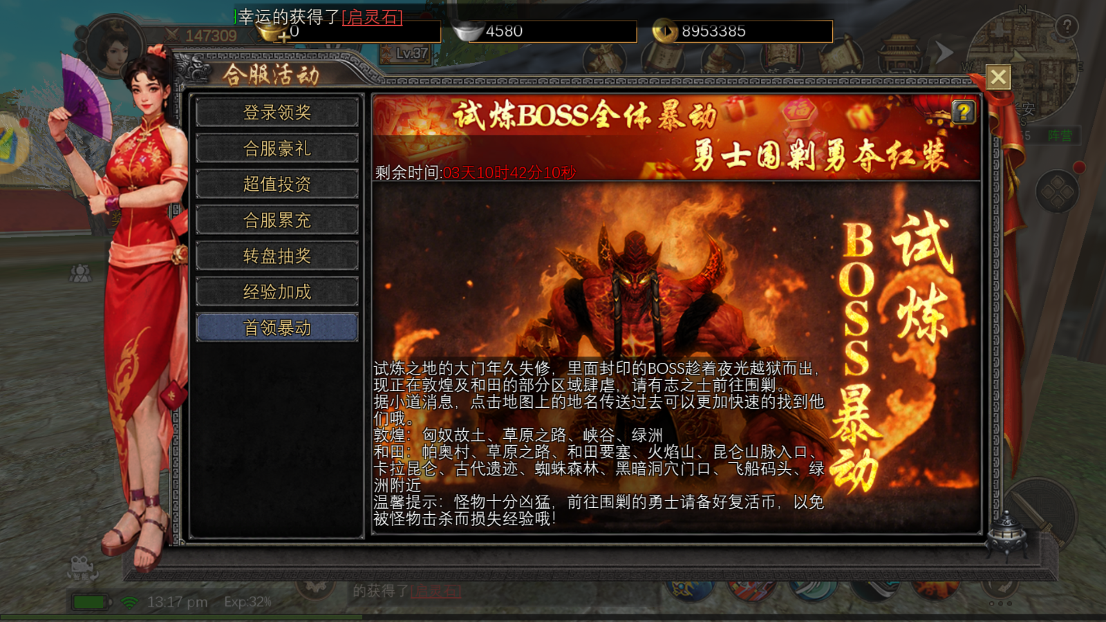 7. 新增试炼 BOSS 暴动:合服活动专属,野外爆试炼奖励活动说明(高收益 BOSS 战预警):