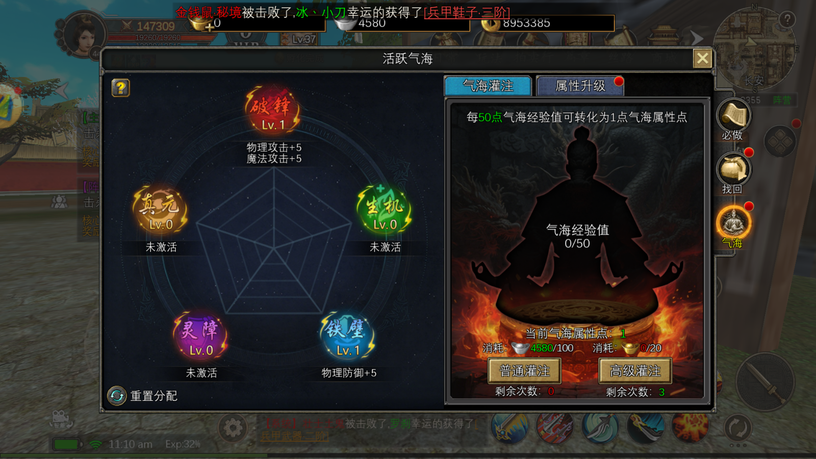 气海系统可通过积累经验转化属性点,解锁 五大核心属性,按需加点打造专属战力: