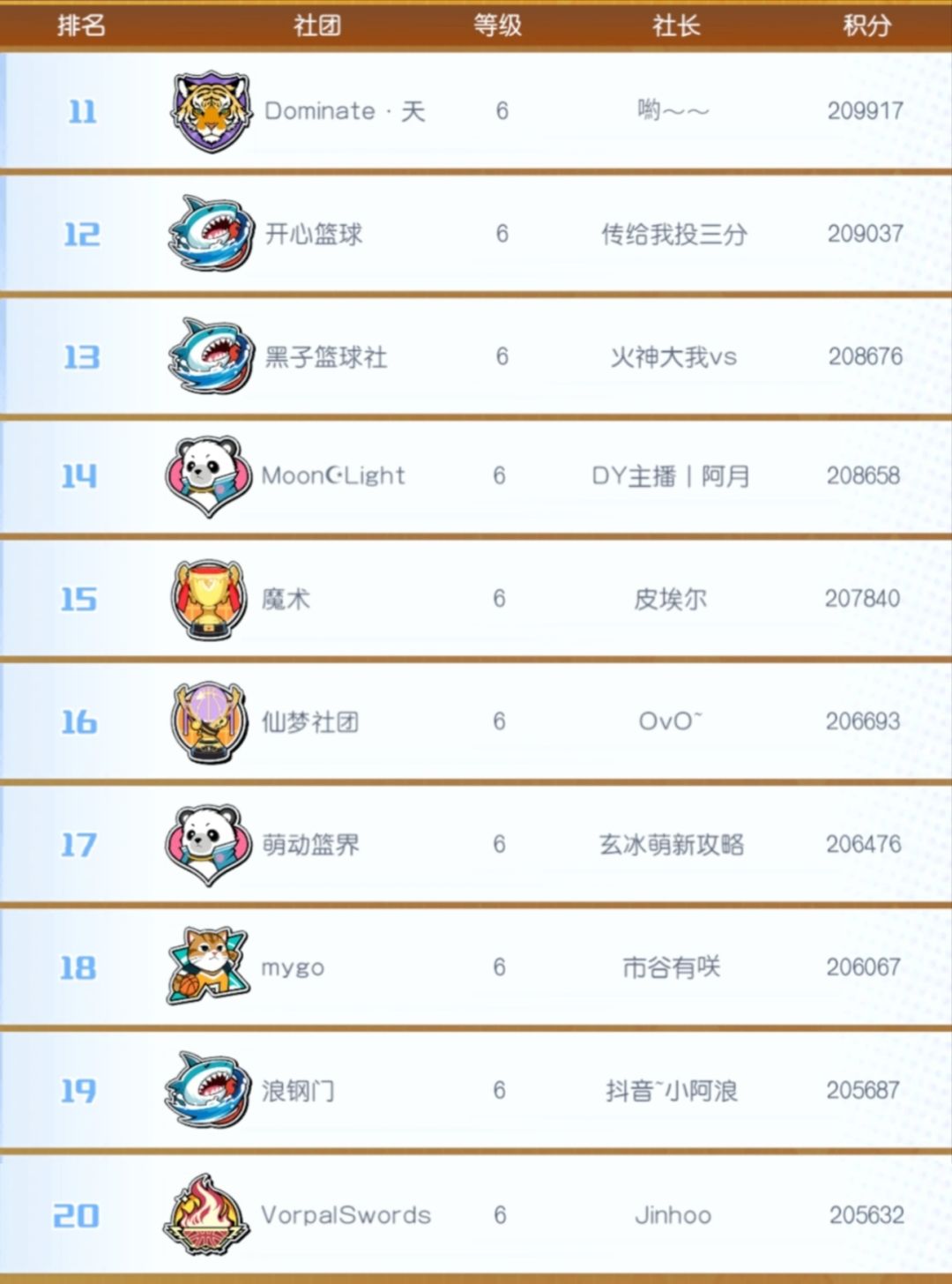冲榜结束后,前20名社团可获得本次天命杯参赛席位: