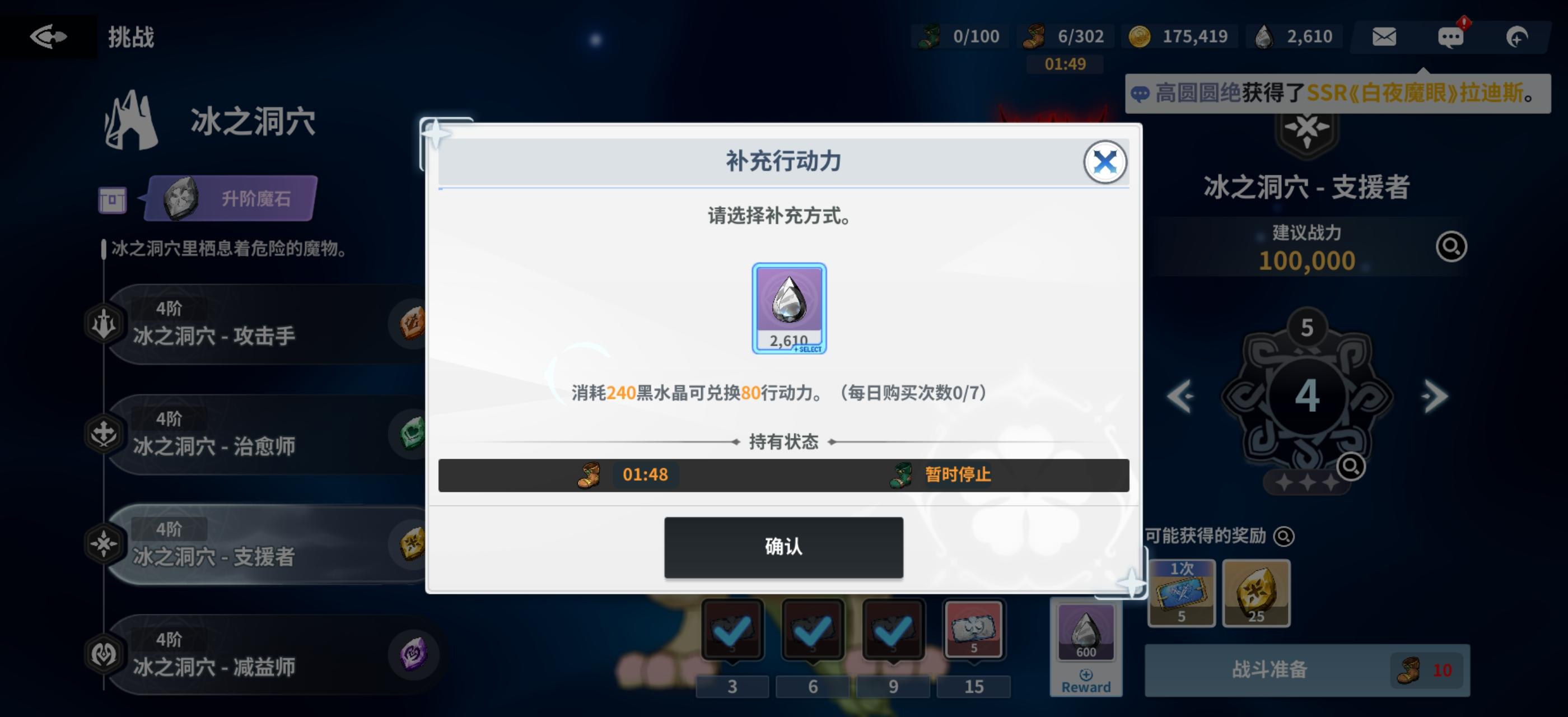 最讨厌的设定来了 体力值,非常缺,就算每天买满也是缺,总是出现战力够都是没体力推关的情况,每天只能买七次太少了,体力上限300点结果五分钟才回一点,玩一天就可以休息一天才玩