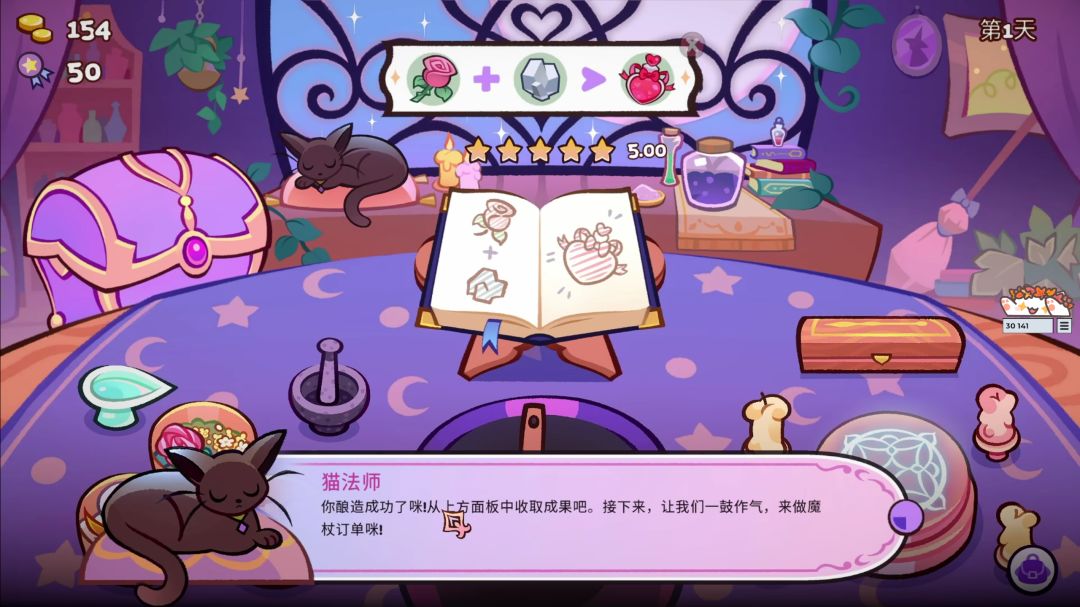 在游戏里,你突然继承了一家颇具年代感的魔药小店,一位说话带点傲娇腔调的猫掌柜甩着尾巴告诉你"从今天起,你就是这的新主人了。" 这里只有一屋子的草药、一口坩埚,以及一位等着你喂食的猫咪上司。你的目标就是满足来店里光顾的客人,制作各自药剂和法杖。