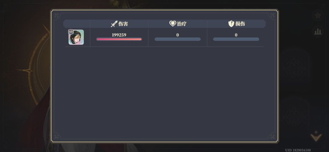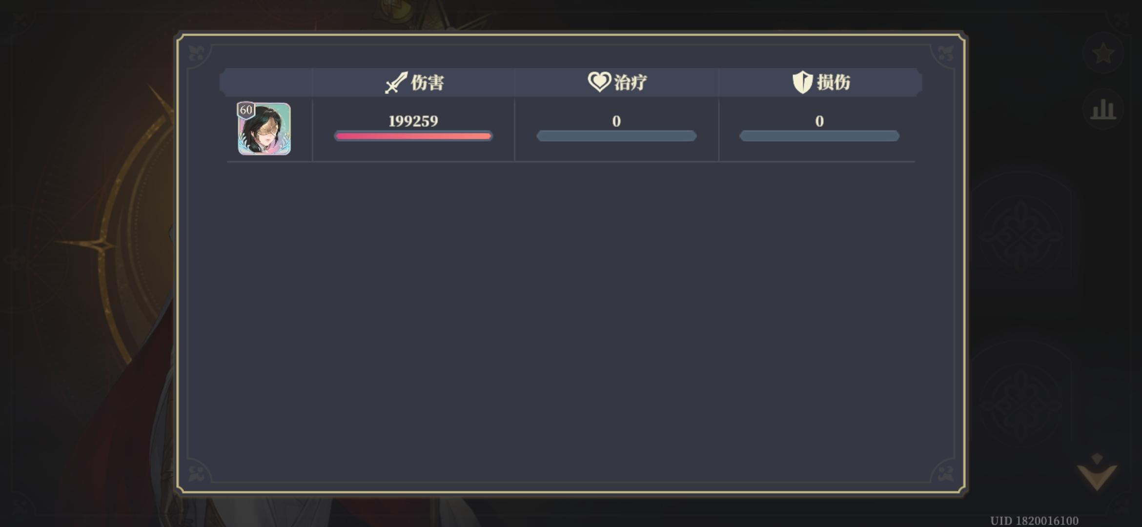 图一、四为所测各角色配置,图三所用回音流纹,图四所用速攻流纹(测了几次发现俩者伤害其实差不多,看哪个暴击数量多了