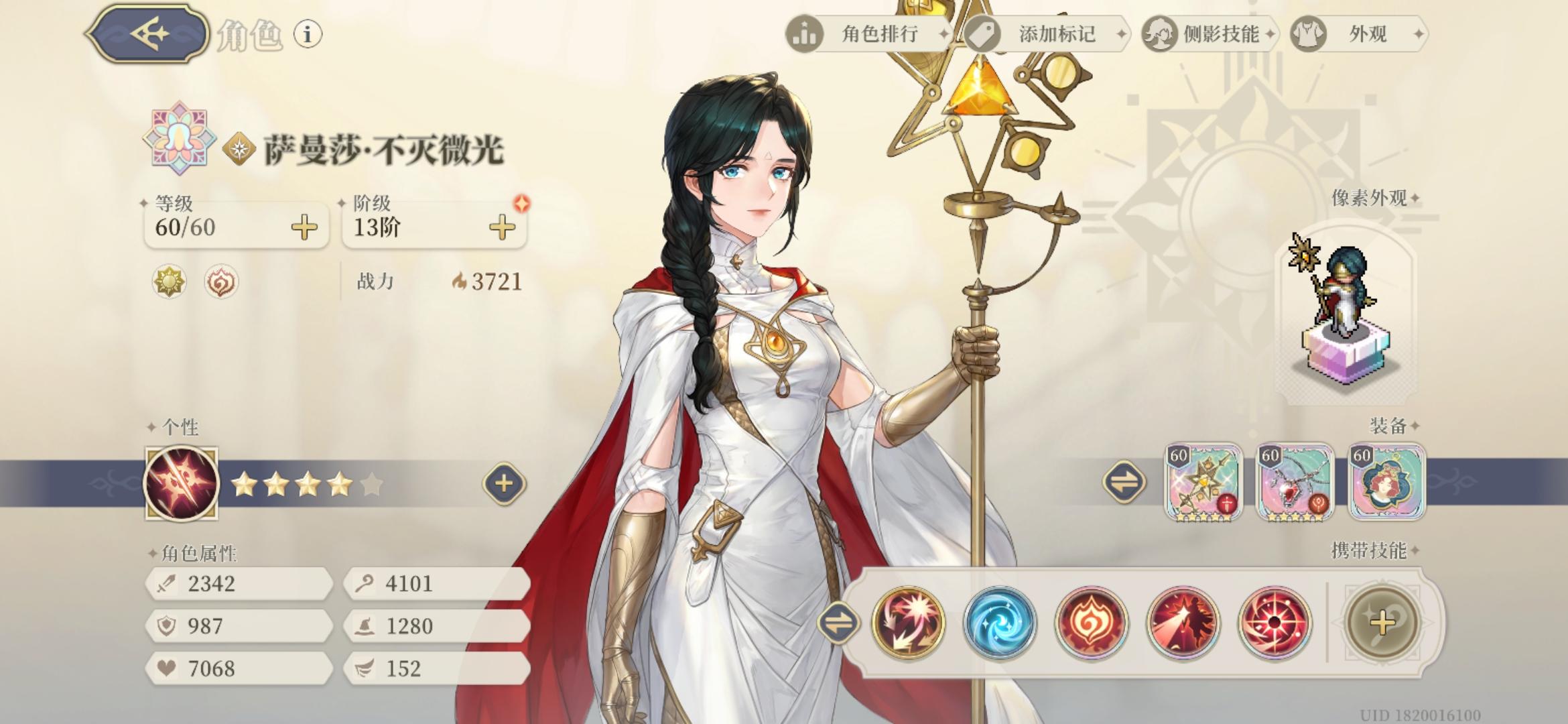 大招仅测试生效三次伤害原因:赛琳娜在携带老登盾时,在第一回合释放技能后若圣剑共鸣层数为4且保留到第二回合行动开始时,若恰好触发老登盾,那么将会被吞掉5层圣剑共鸣(之所以说是吞掉,是因为即使在使用回音剑纹时,触发未达4次,也会消耗掉5成圣剑共鸣)。在不打算抽取专武且单辅助的情况下实战中不携带誓约将不可能触发4次回音剑纹 (反正我没想到解决方法,不带誓约因为cd太长我想带旗子)。