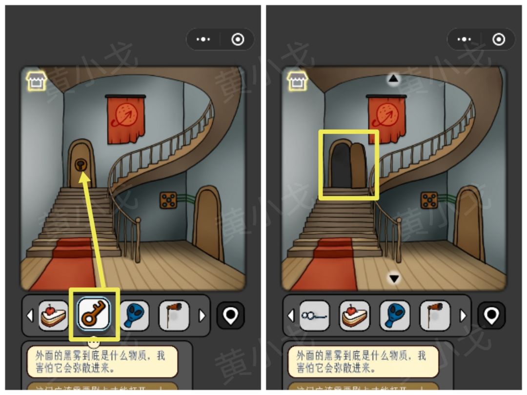 7.用【钥匙】打开楼梯口上的房间,进入新场景