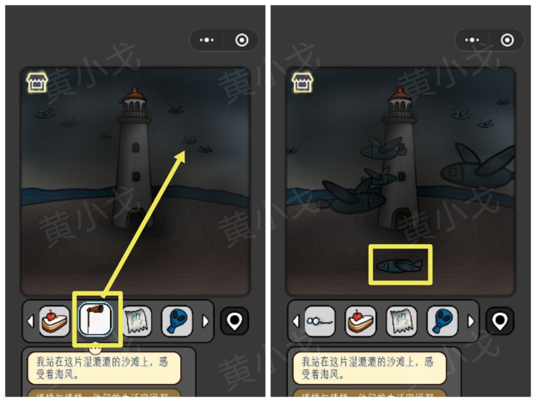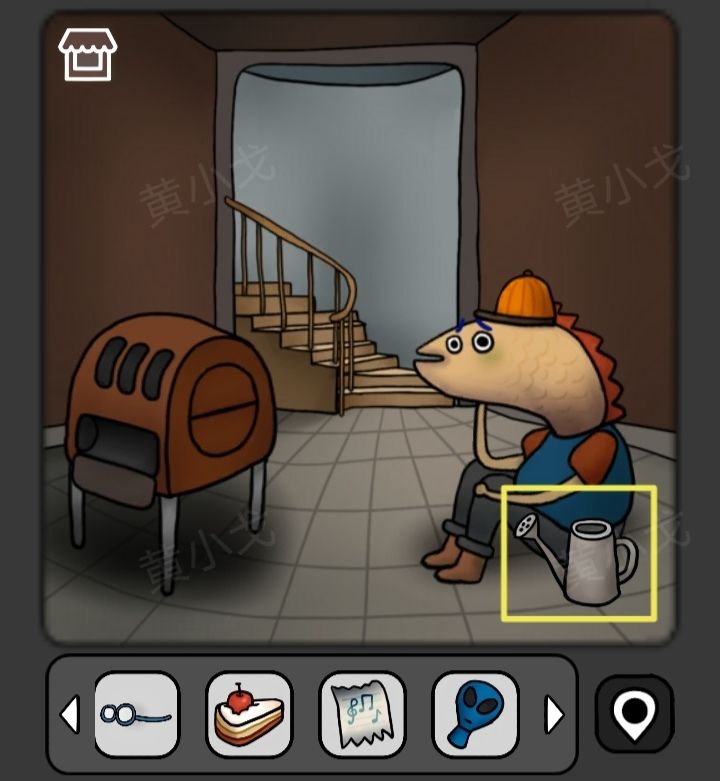 11.根据门上的画,把【会飞的鱼】丢到网上,用激光仪打开门