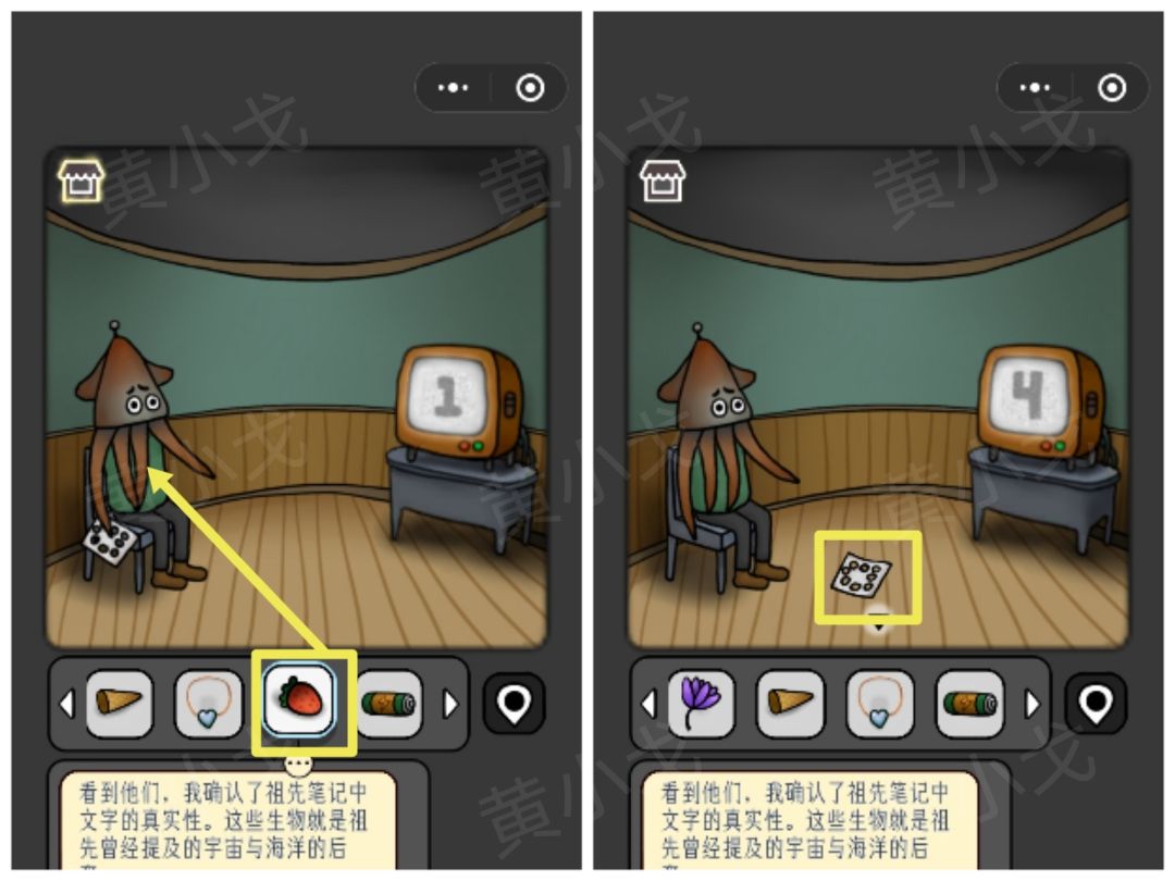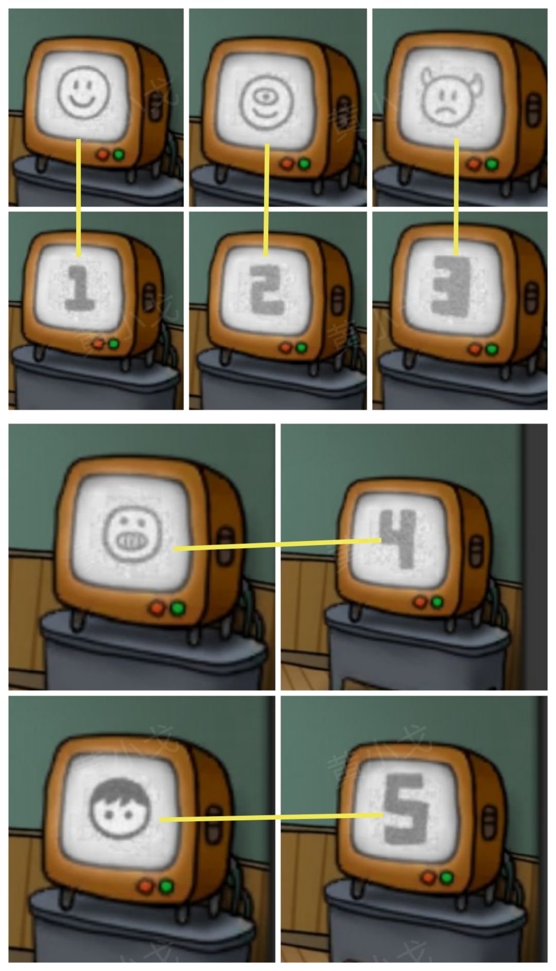 40.点击底座上的机关,根据上面的图案提示,结合电视画面上的图案及数字线索,完成数织小游戏