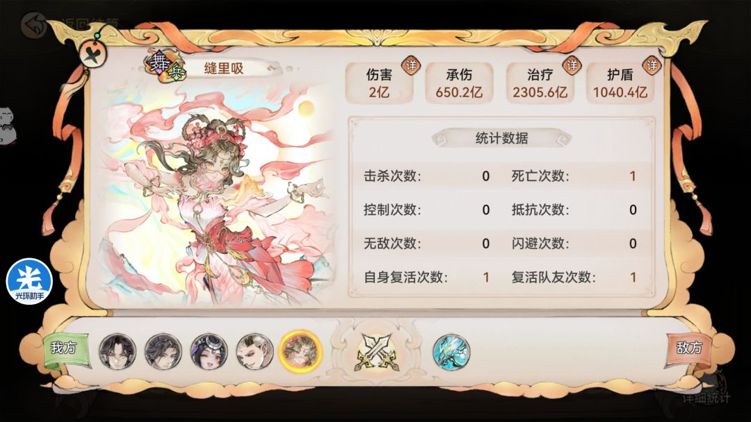 另外,作为神话弟子,【舞凤】特有的天命三效果也与【唐蝶衣】有所区别,增加了每次施展法宝神通后,使自身的职业技能、功法技能冷却降低一回合的效果,因此其携带的【山海梦间集】与【魂归】能够更加快速的释放,也能够助其更加长时间的战场,up主实际看了一场,【舞凤】一场6次复活居然有4次都是通过【魂归】以及【二阶木】自己站起来的。