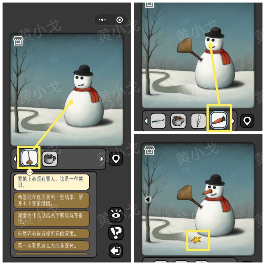 16.给雪人插上【扫帚】和【胡萝卜】,获得【五角星】