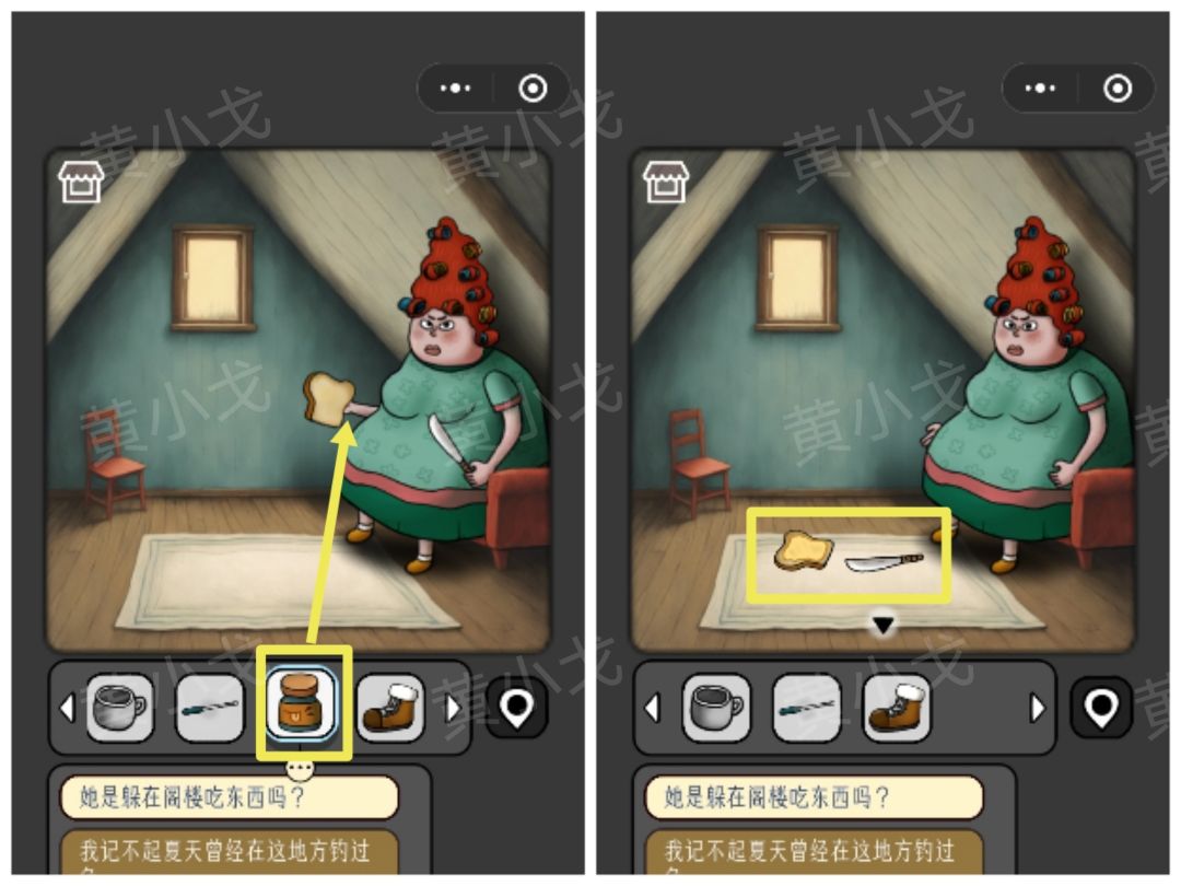 7.拿【黄油】给女人,拾取地上的【面包】和【刀】