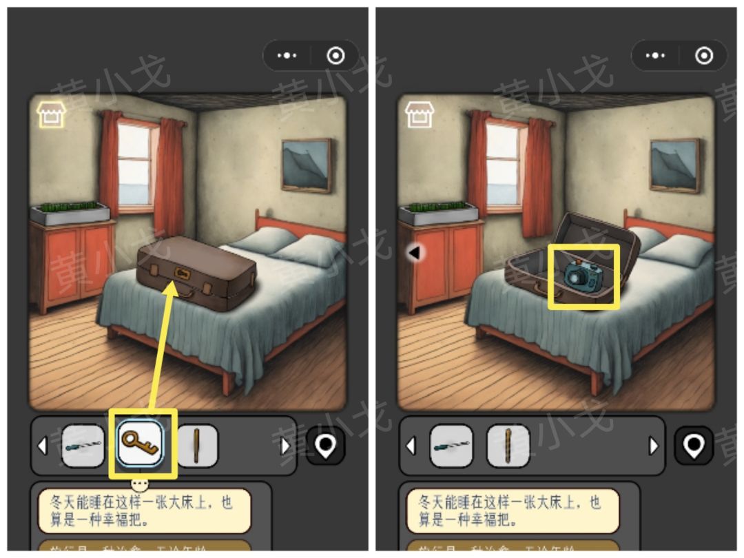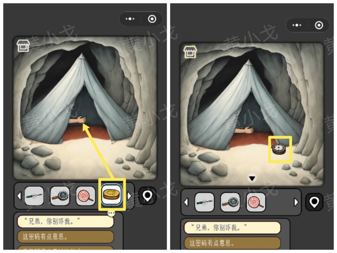 🔶注意墙上的画,两张纸条拼在一起可得到数字:23848(还有山洞图案)