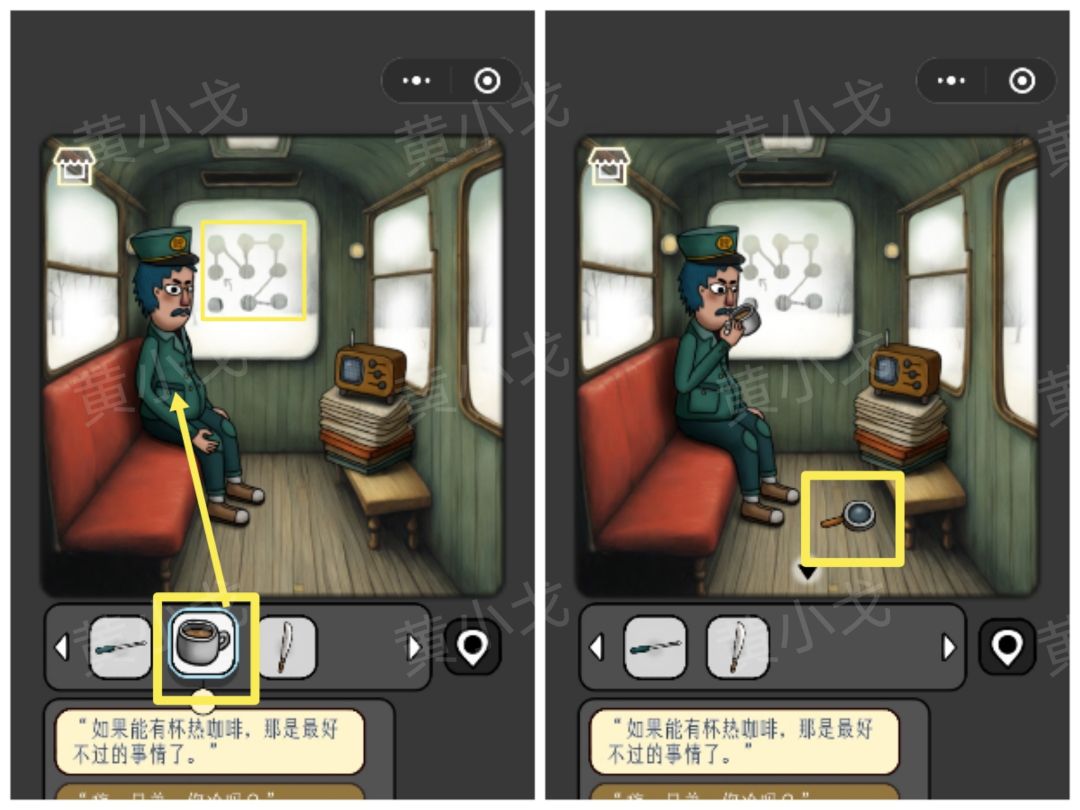 18.拿【咖啡】给列车员;拾取地上的【放大镜】