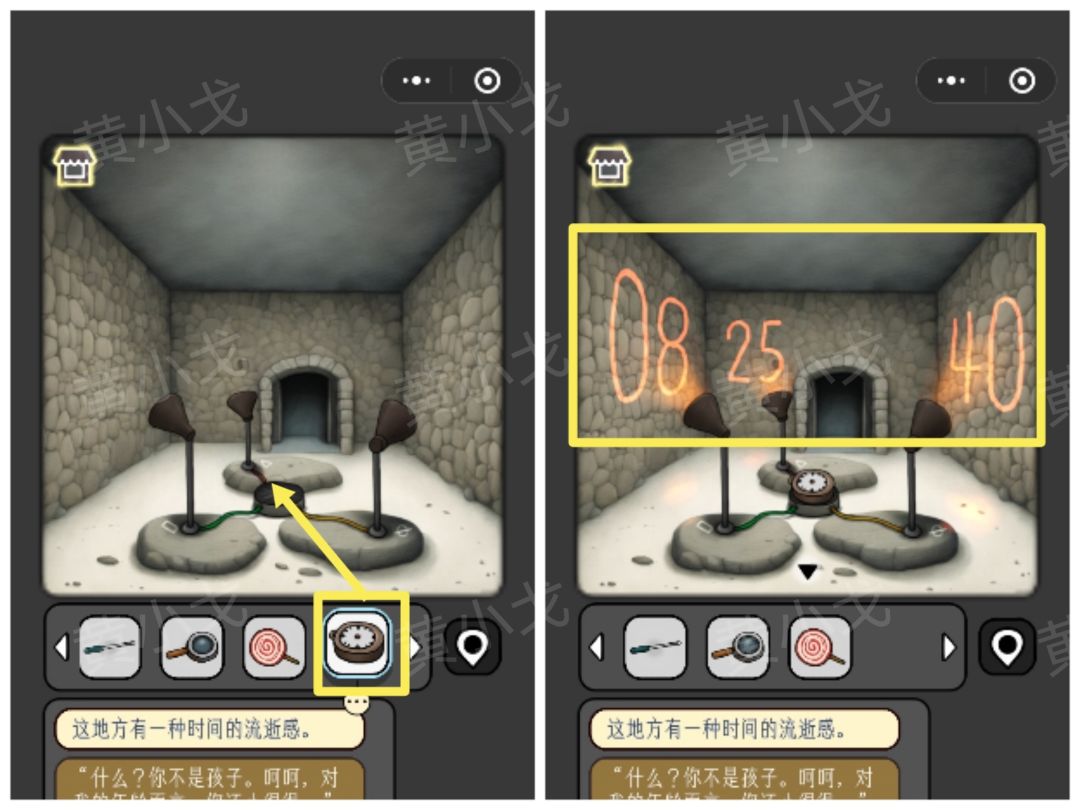 32.点击水晶球上的密码锁,根据[石屋-装置]上的线索,输入密码:08 25 40