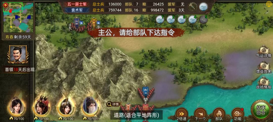 2、配置好兵力和宝物后,攻打右北平。