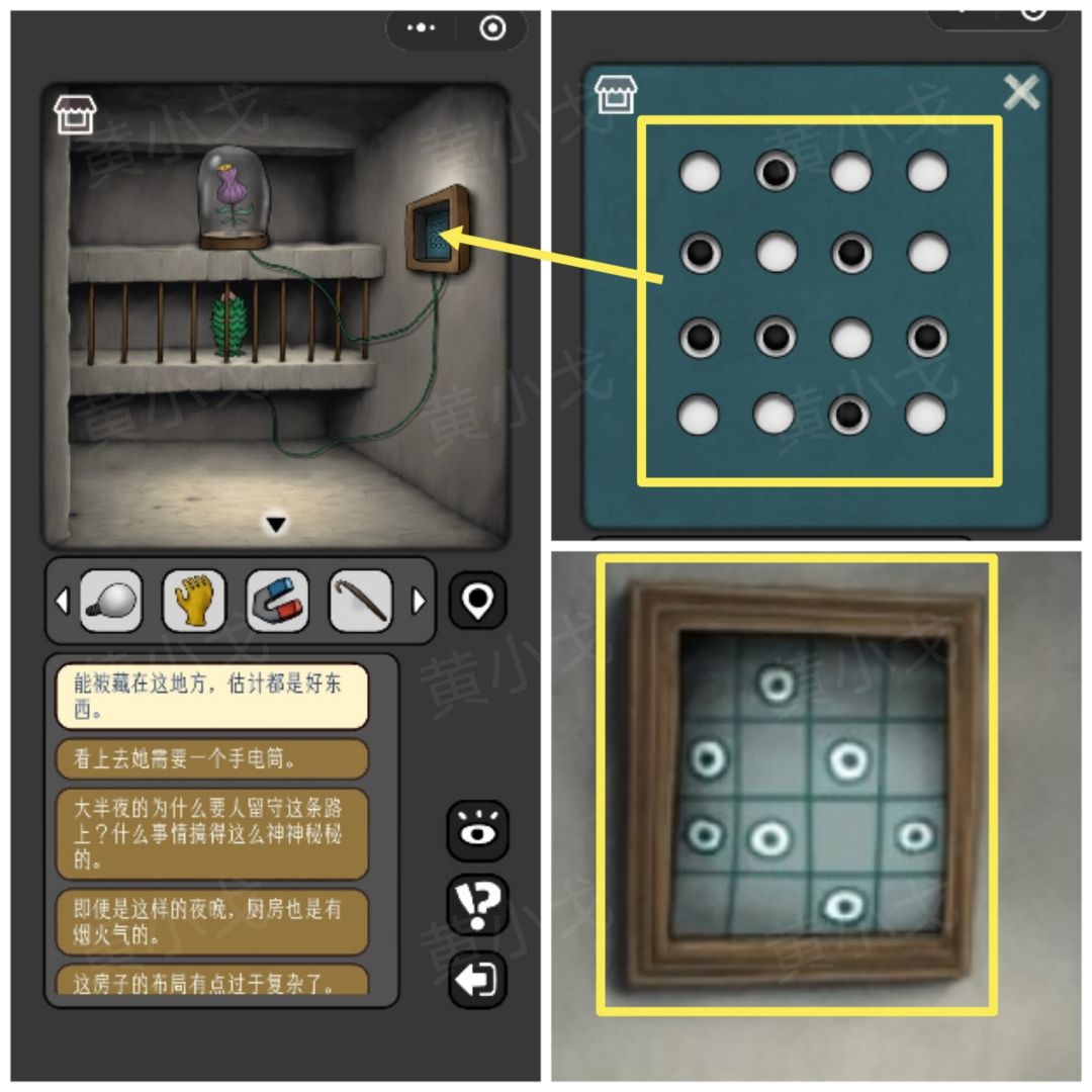 23.点击墙上的机关,根据[小男孩]场景画上的线索,调整机关