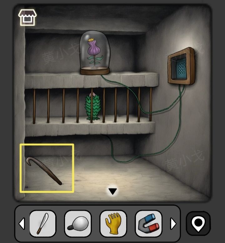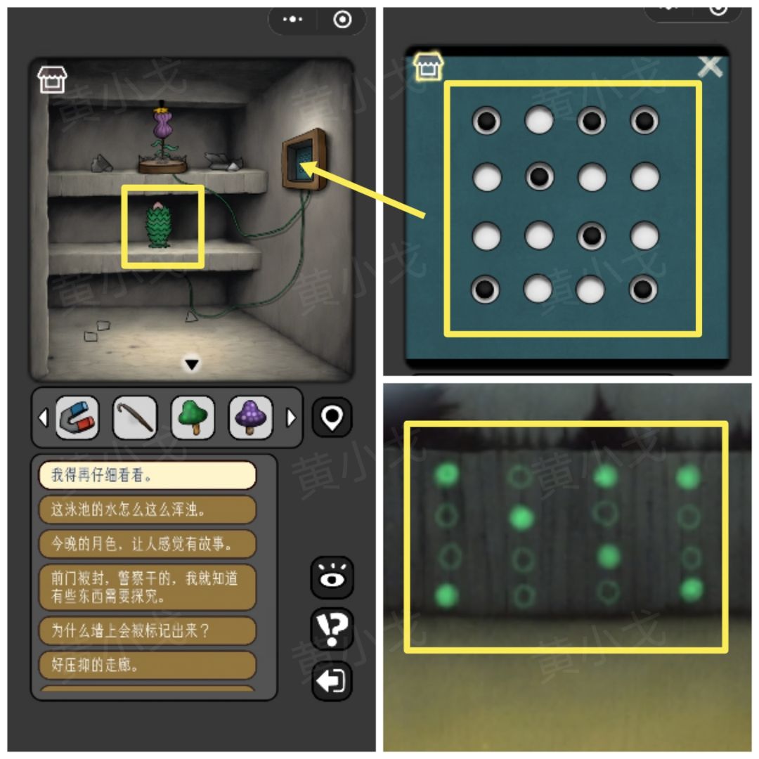 31.点击墙上的机关,根据[泳池]场景墙上的出现的图案,调整机关;打开围栏,获得【植物】