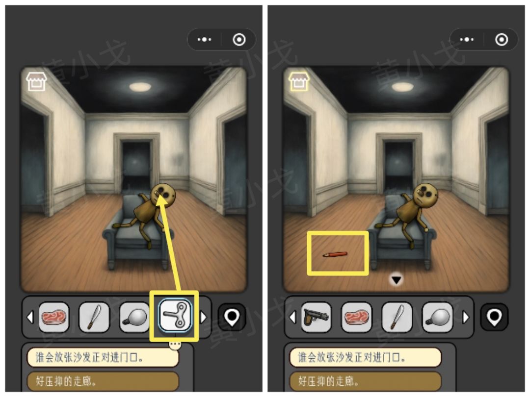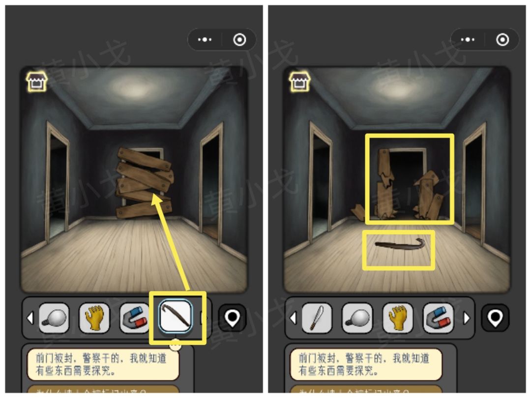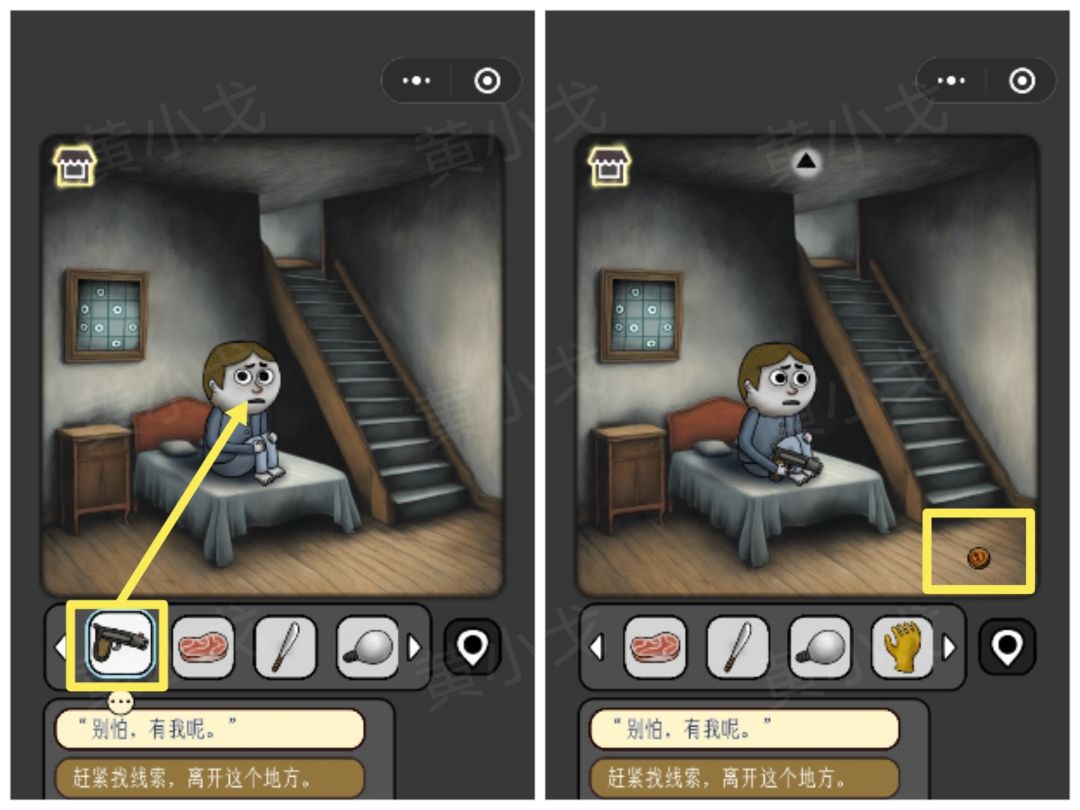 7.点击床上的纸条,用【铅笔】描痕,获得线索