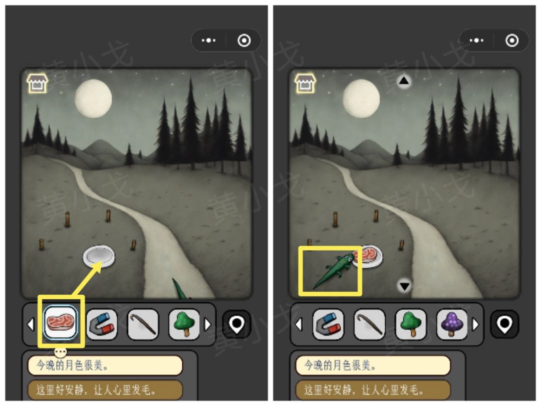 16.拿【肉】喂蜥蜴,获得【蜥蜴】