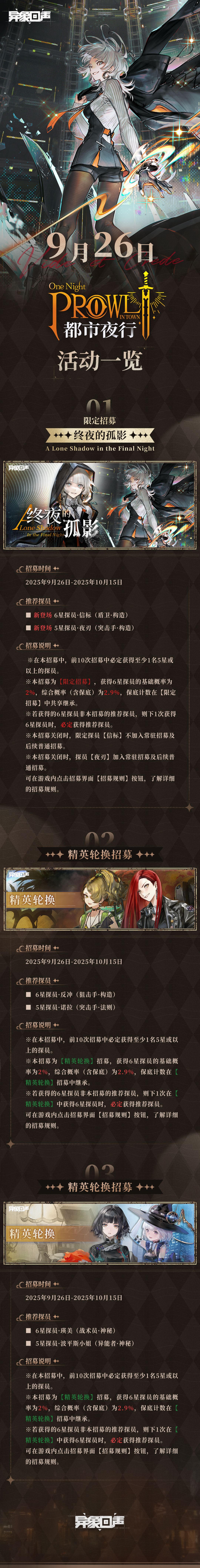 《异象回声》将于9月26日更新「都市夜行」版本!本次调查的情报档案已由特别调查科探员整理并放在科长的办公桌上,请科长及时查阅!